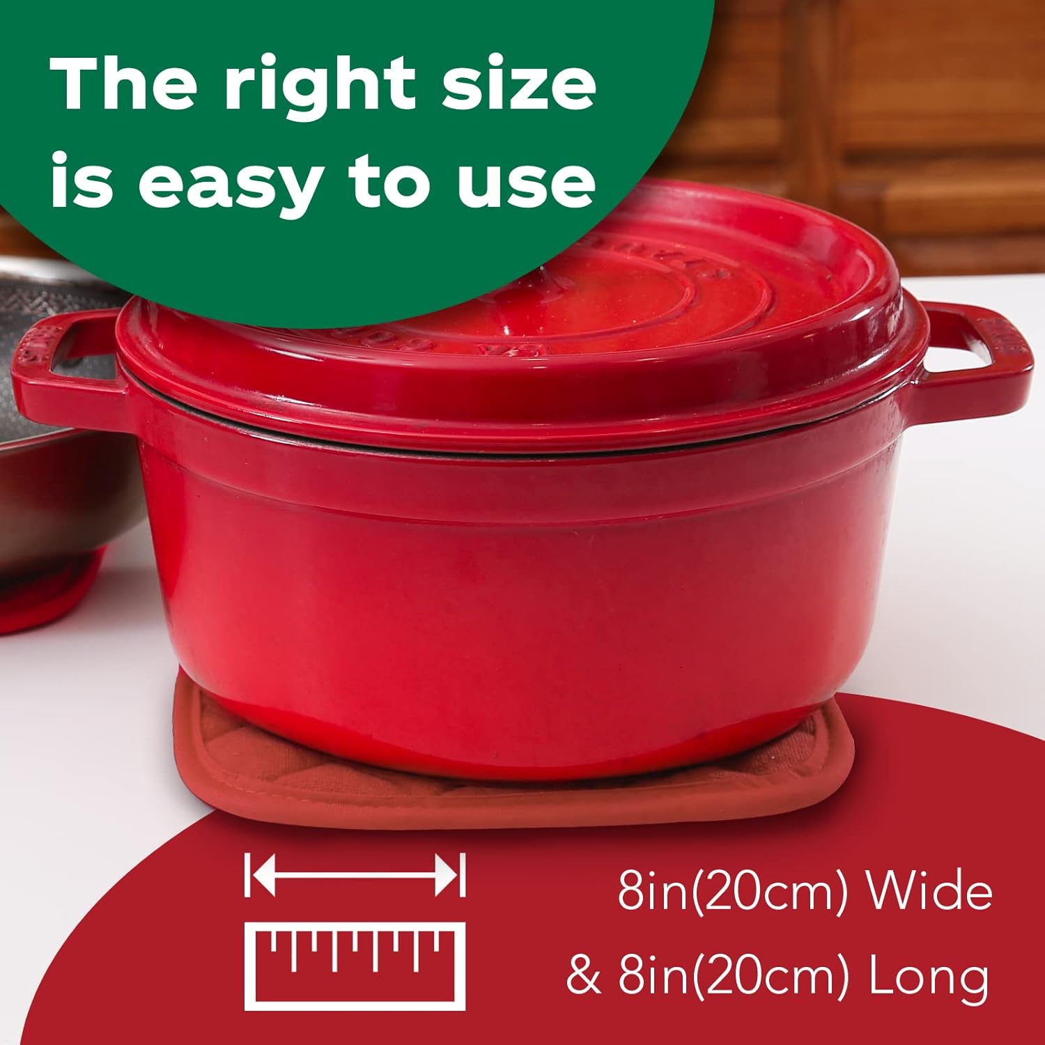 - DURABLE AND FIRM GRIP - The flexible material allows for ease of use and firm grip on the hot dish or pot, adding safety to the cooking process.Fashionable, practical and safe to use in the kitchen as potholder or trivets. Perfect for indoor or outdoor usage all year round!