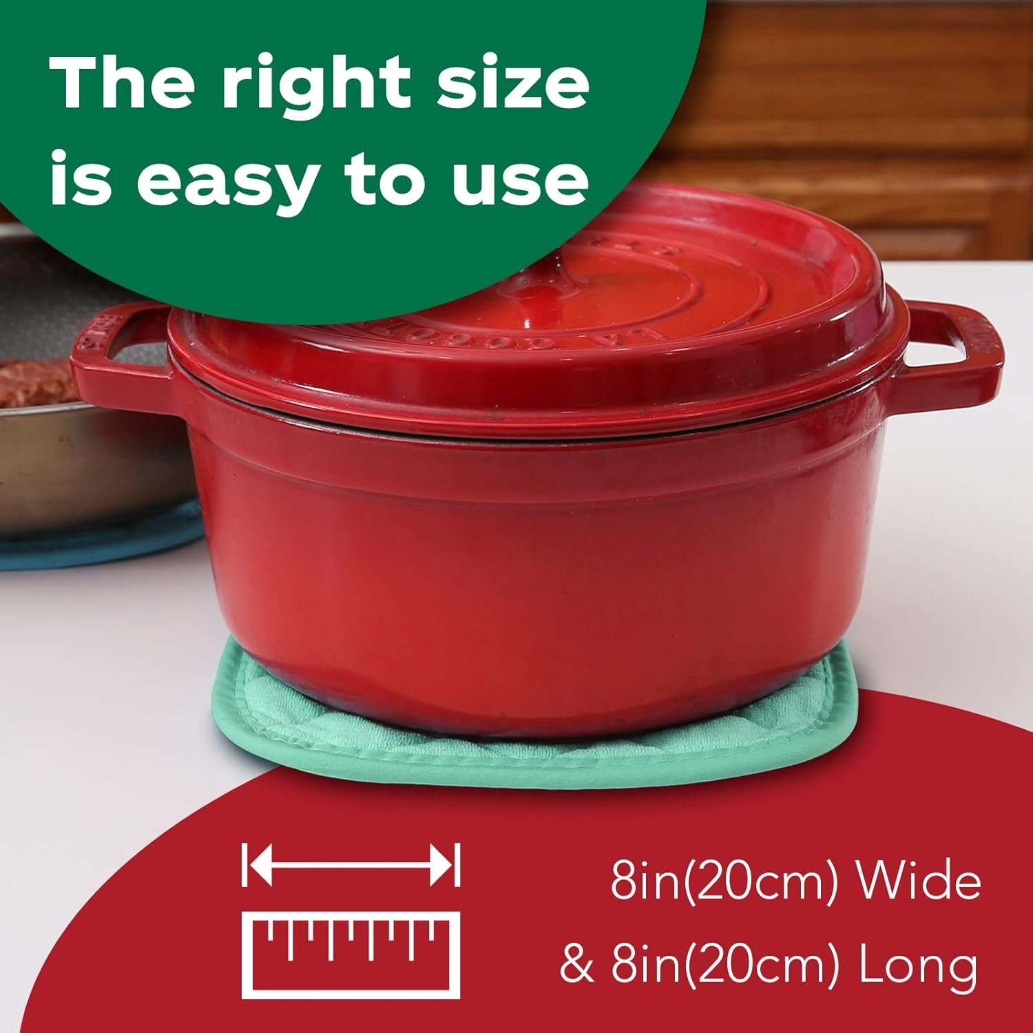 - DURABLE AND FIRM GRIP - The flexible material allows for ease of use and firm grip on the hot dish or pot, adding safety to the cooking process.Fashionable, practical and safe to use in the kitchen as potholder or trivets. Perfect for indoor or outdoor usage all year round!