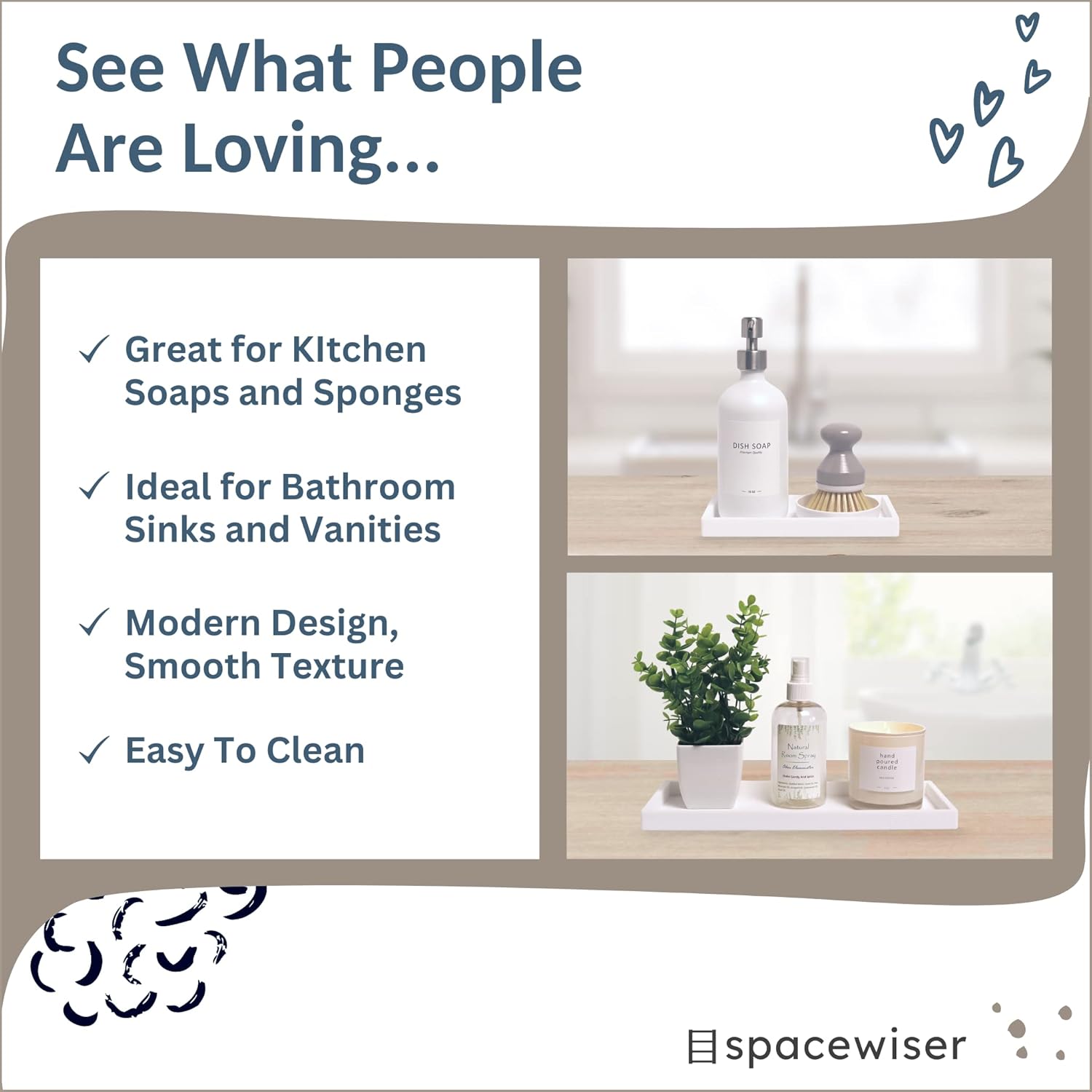 - Easy Organizing – Tidy up with a cohesive aesthetic. The thoughtful sizing makes them the ideal bathroom sink organizer, kitchen sink organizer, or soap dispenser tray and sponge holder for kitchen sink counter areas.