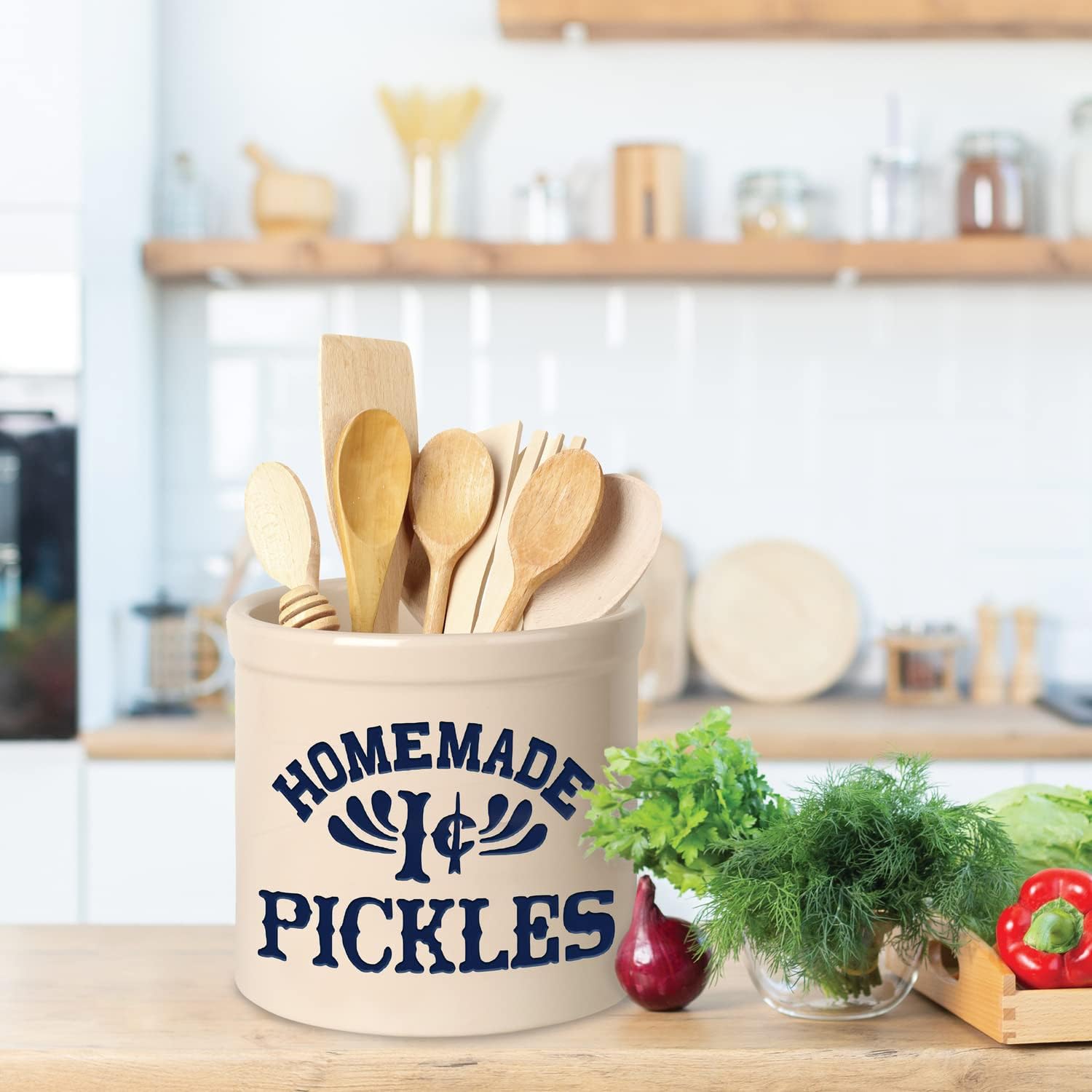 Clarus Crystal Pickles Jar as seen on the show Friends in Monica's kitchen 2 Gallon Crock Pot Utensil holder. 2 Gallon. 4 Colors Available