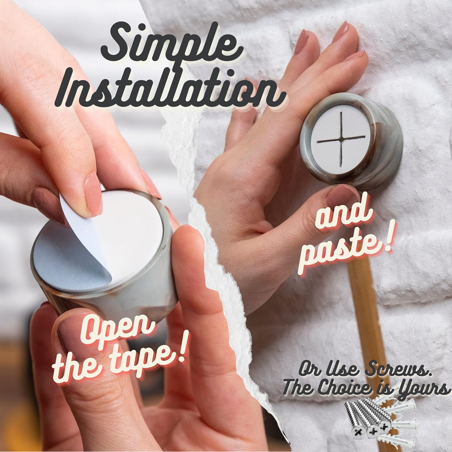 - Flexible Installation - Our modern kitchen towel holders are easy to install with two options. You can use the self-adhesive tape on the back for flat surfaces, or mount it to the wall with the included screws and dowels. The choice is yours!