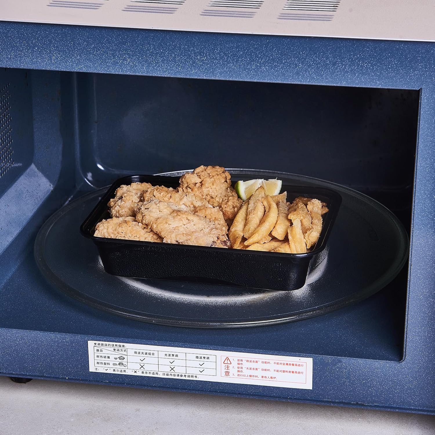 FULIGN 24 oz Meal Prep Containers With Lids Reusable 50 Pack Extra-thick Plastic Food Storage Black Disposable To Go Lunch Box BPA Free Stackable Microwave Dishwasher Freezer Safe