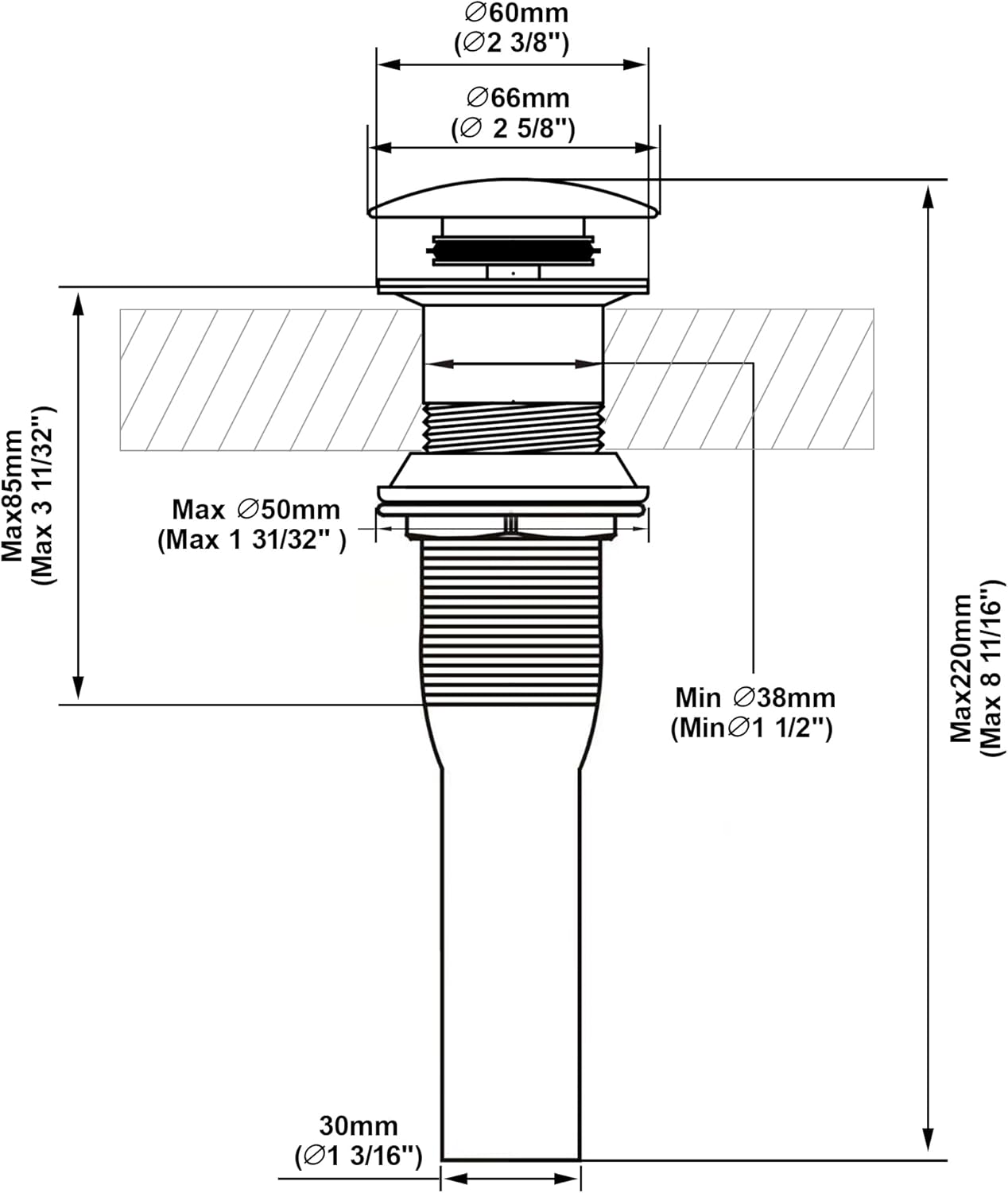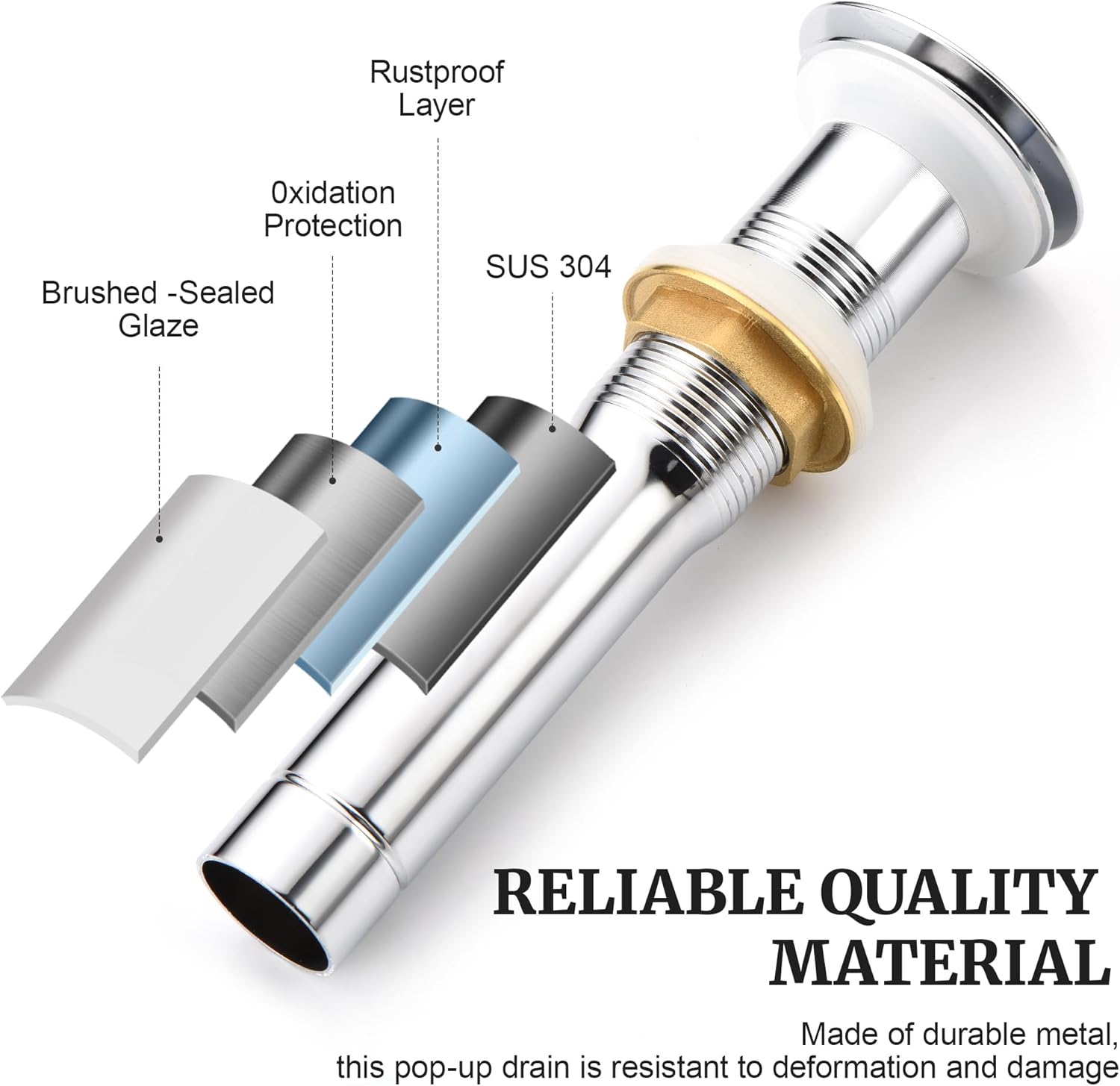 - SIZE AND QUALITY: It fits Standard 1 3/4" Drain Opening and can also fits drains holes diameter varying from 1 1/2" to 1 7/8 inch ( 1.55 to1.87 inches ) . Which is made of high quality brass and great 304 stainless steel with professional and exquisite craft, which make it quality and durable