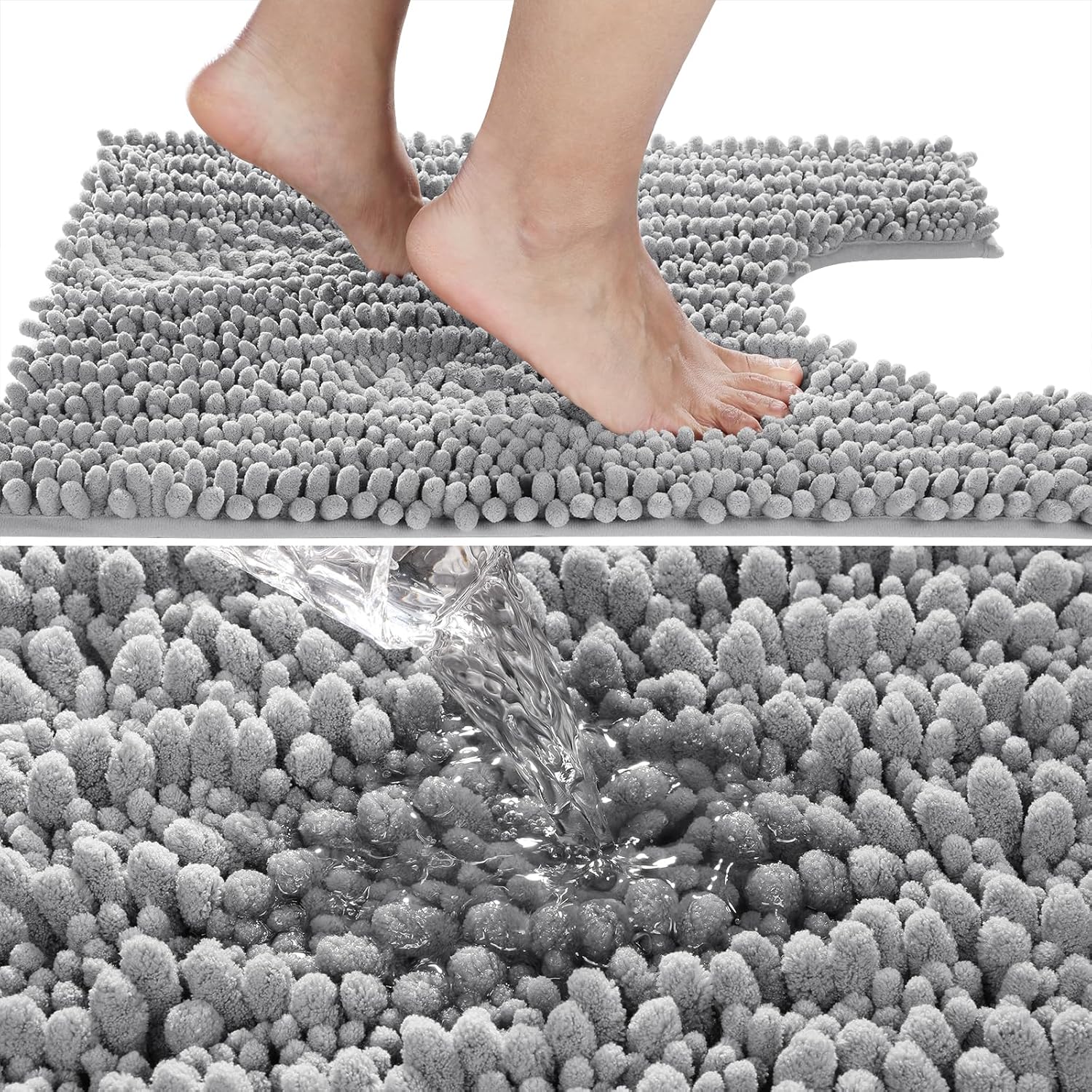 Yimobra Toilet Rug U Shaped Washable 24x20 Inch - Ultra Soft Absorbent Chenille Bath Rugs for Toilet, Quick Dry & Machine Washable, Non Slip Contour Bathroom Mat, Gray