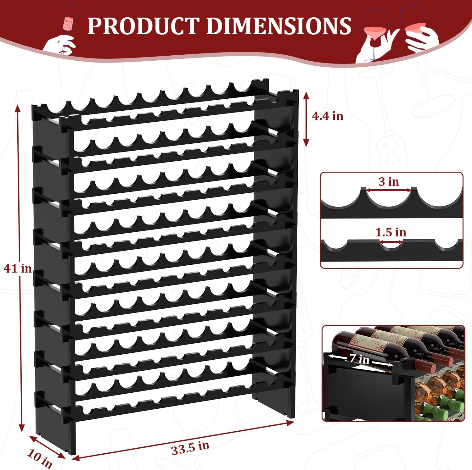 - 72 BOTTLE CAPACITY: Assembled dimensions are approx.: 10"D x 33.5"W x 41"H. Our wine bottle holder can hold up to 72 bottles of wine, which is better for standard bottles(750ml) or Bordeaux style bottles. Ideal for organizing and displaying your wine collection.