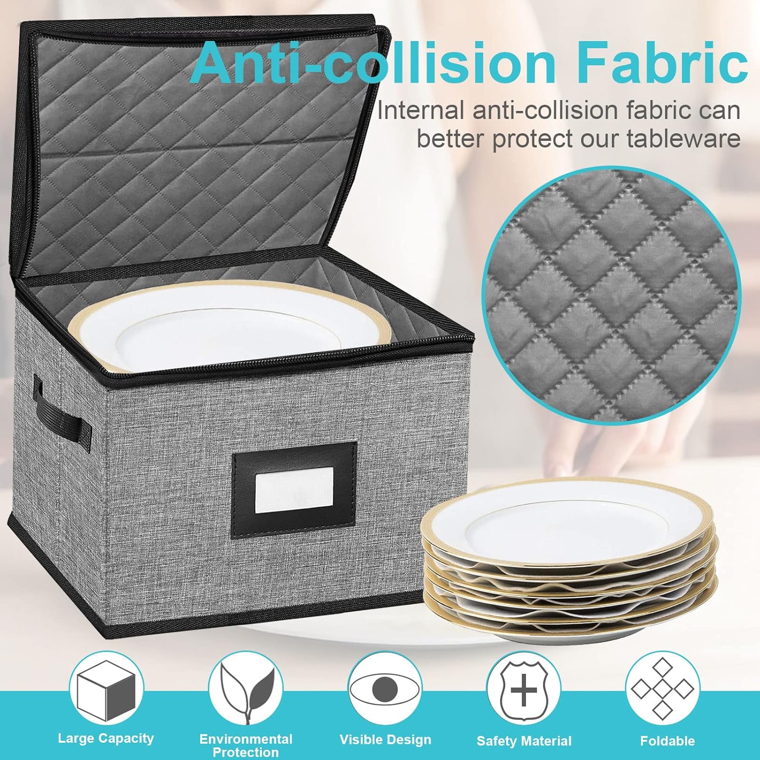 China Storage Containers-4PACK Quilted Dish Storage Containers with Lid Hard Shell for Moving Transport, Dinnerware,Stackable Plate Storage,24 Felt Plate Dividers Included,12 * 12 * 8in