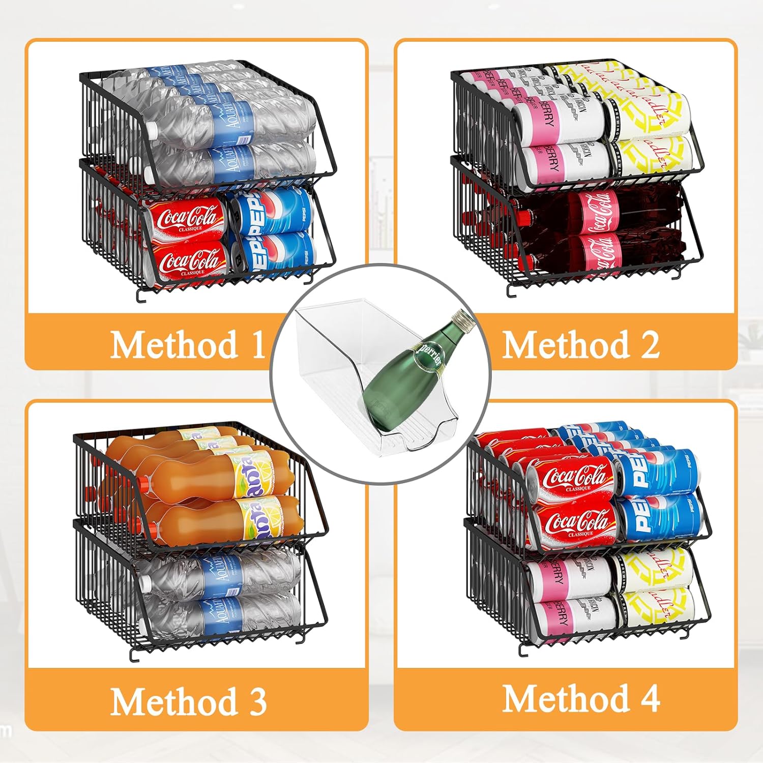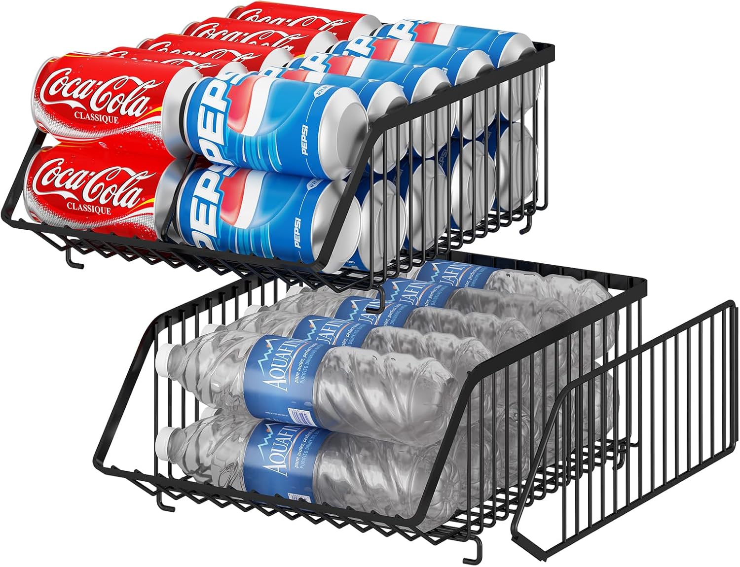 - Slim But Sturdy Construct: Our drink organizer made of quality metal with classic coating, which is rustproof and durable enough to resist scratch. Even if several baskets are stacked, it can stand steady enough but won't making you feel heavy