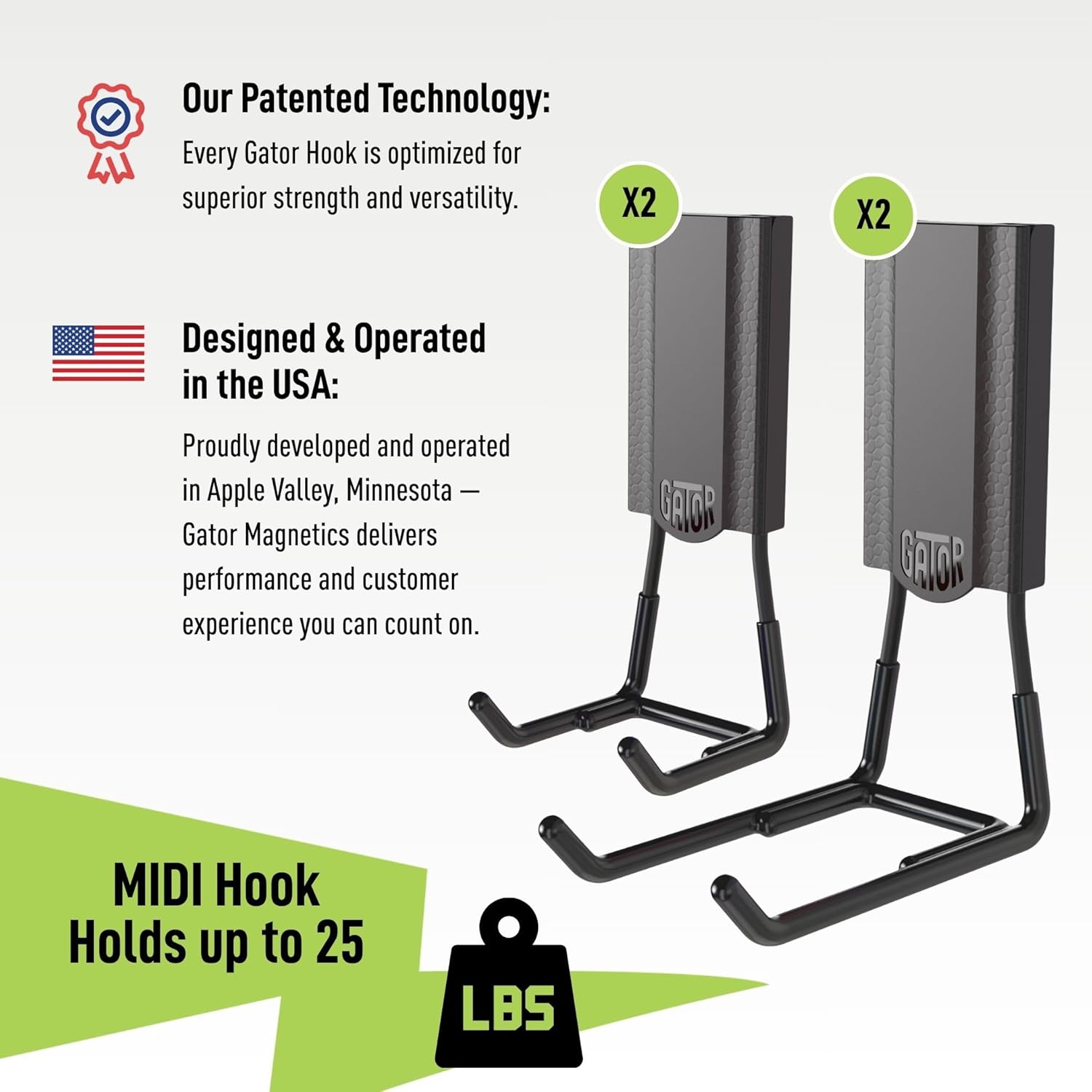 GATOR MAGNETICS MIDI 2.5 & 4" Open Hooks, 25 lb Heavy Duty Magnetic Hooks for Steel Surfaces, Patented Easy-Release, Non-Slip Grip – Storage & Organization, Garage, Shed, Home, Cleaning Tools -4 Pack