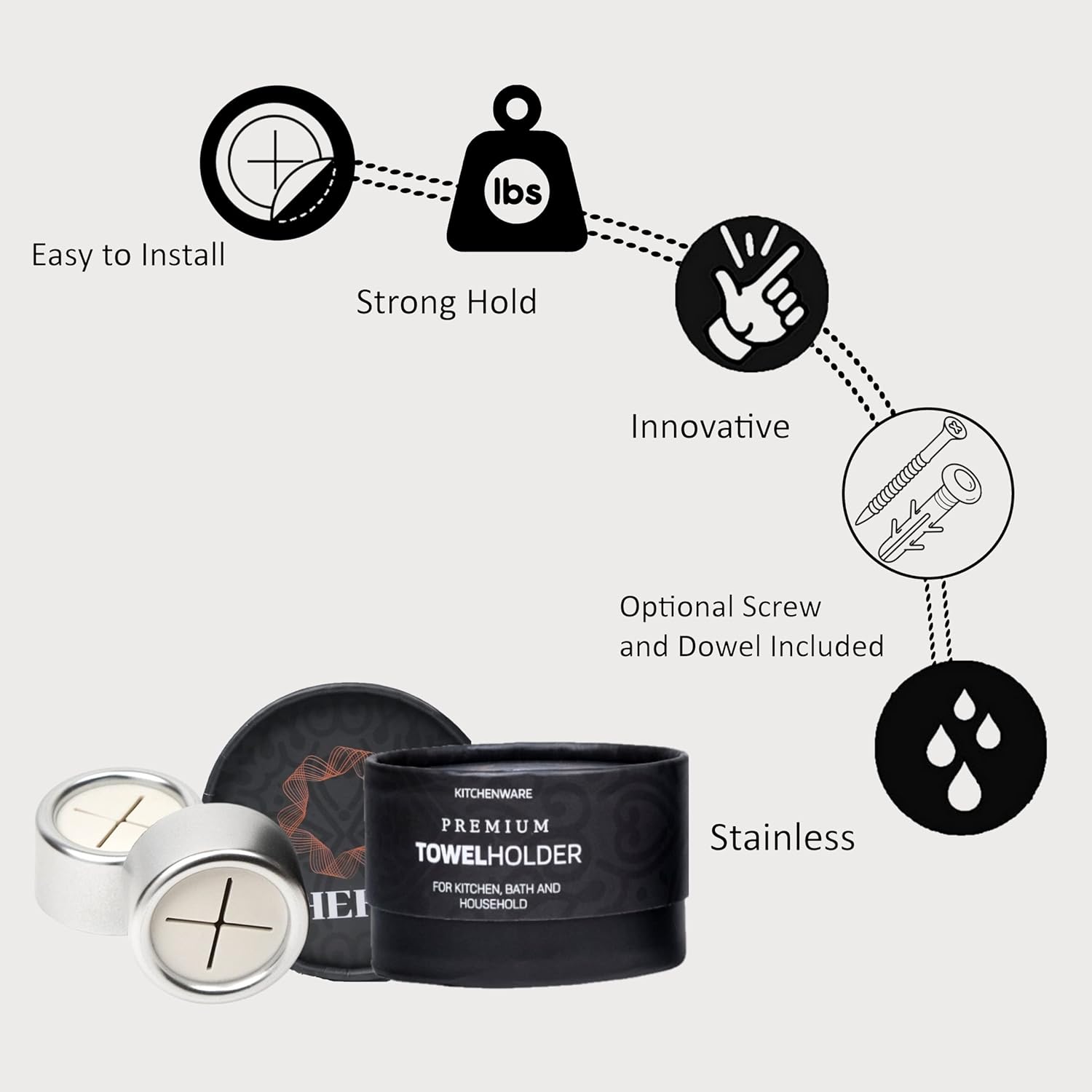- Gift-Ready - Our towel hooks make a great gift thanks to the high-quality, specially designed paper tube packaging. They're perfect for newlyweds, home changers, and anyone who spends time in the kitchen. Plus, we offer a warranty and are committed to 100% customer satisfaction.