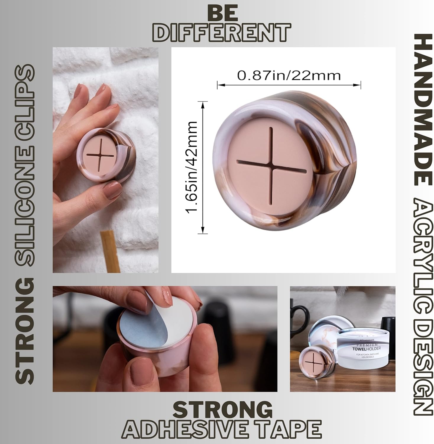 - Elegance & Premium Design - Our towel hooks feature a premium and exclusive design with acrylic body that is both elegant and durable. Patterns may differ from what is shown in the picture, as it is a product-specific application. Unlike similar hangers, our product uses high quality materials for long-lasting use. You will appreciate the premium feel and user experience. You are holding our product in your hand.