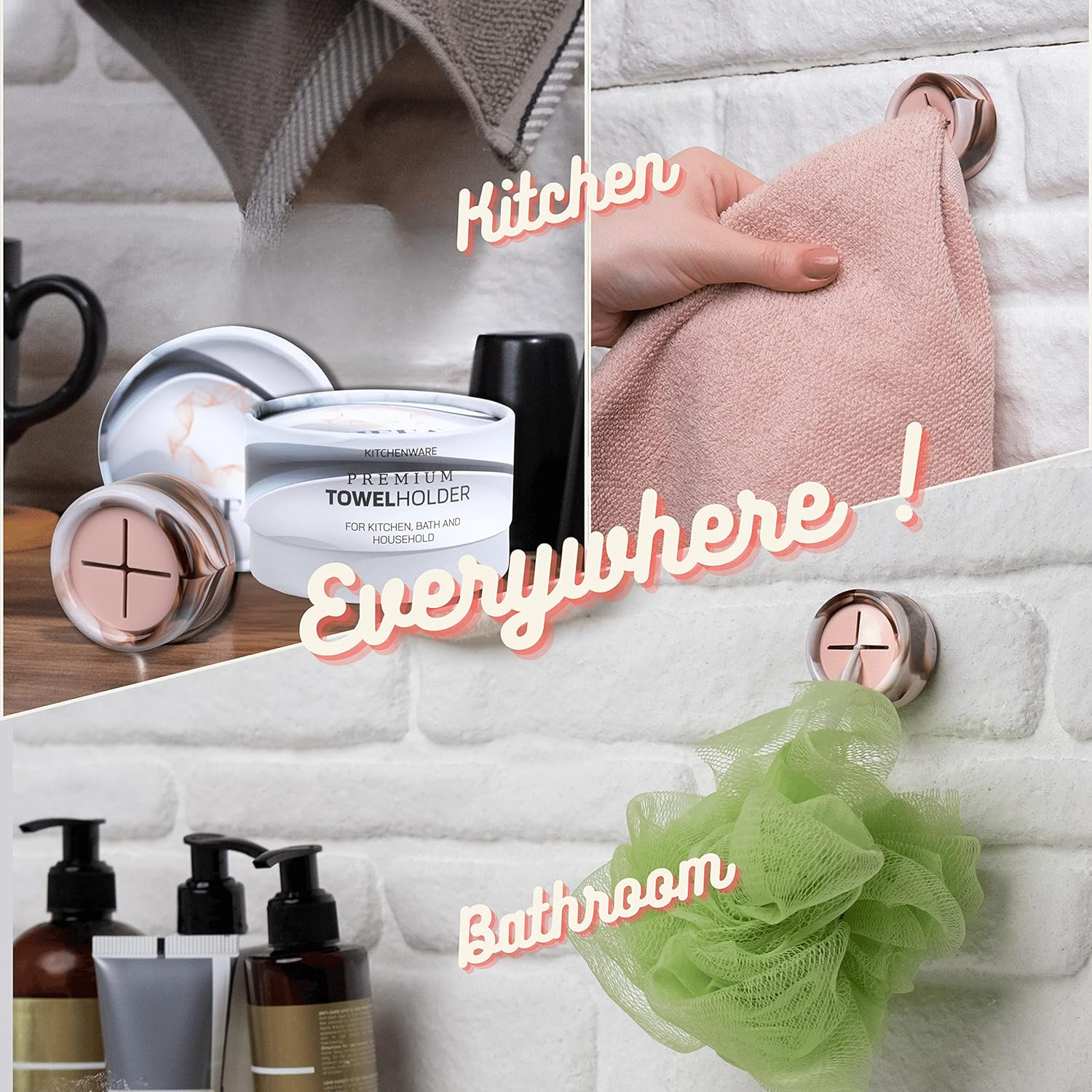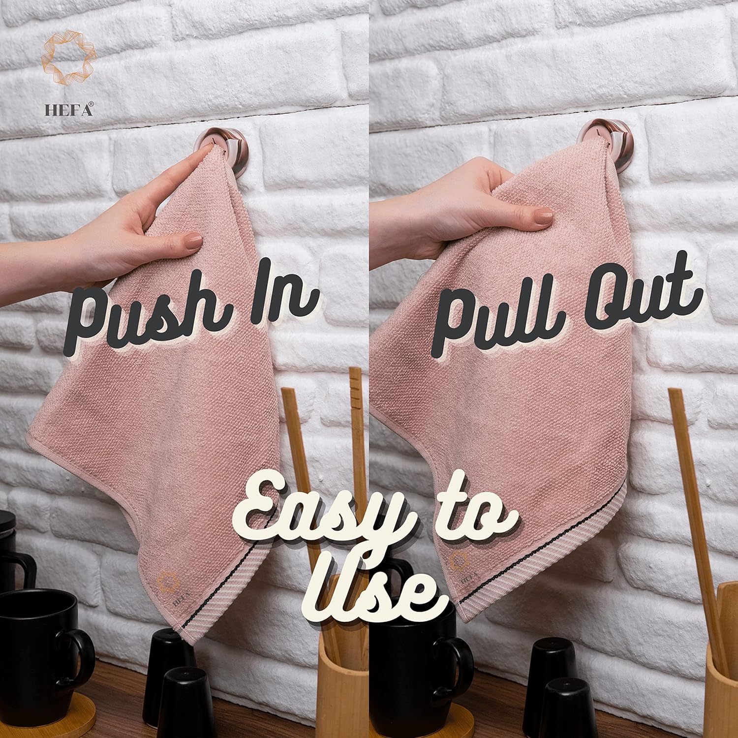 - Effortless Organization - Our practical towel hooks are versatile and easy to use. Hang hand towels, dishcloths, gloves, aprons, and more in your kitchen or bathroom. The silicone grips use a physical buckle principle to hold towels tightly without causing damage. Simply push and release to add or remove your towel.