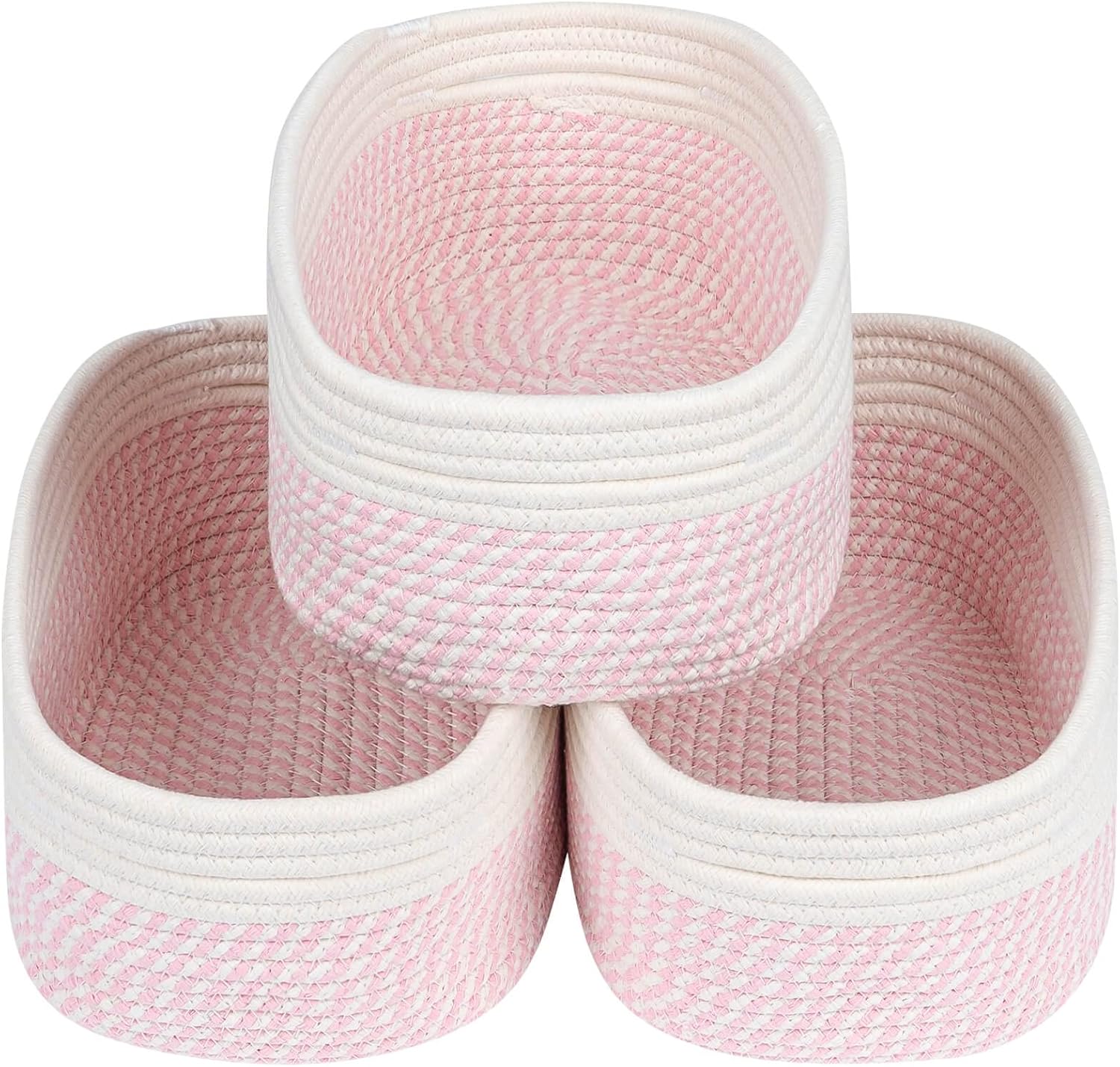 CubesLand Rectangle Organization/Storage Basket, Natural Cotton Rope Woven Baskets for Organizing, Small Basket for Kids, Baby Nursery, Cat Dog Toy Baskets, Organizer Bins for Shelves 3 Packs