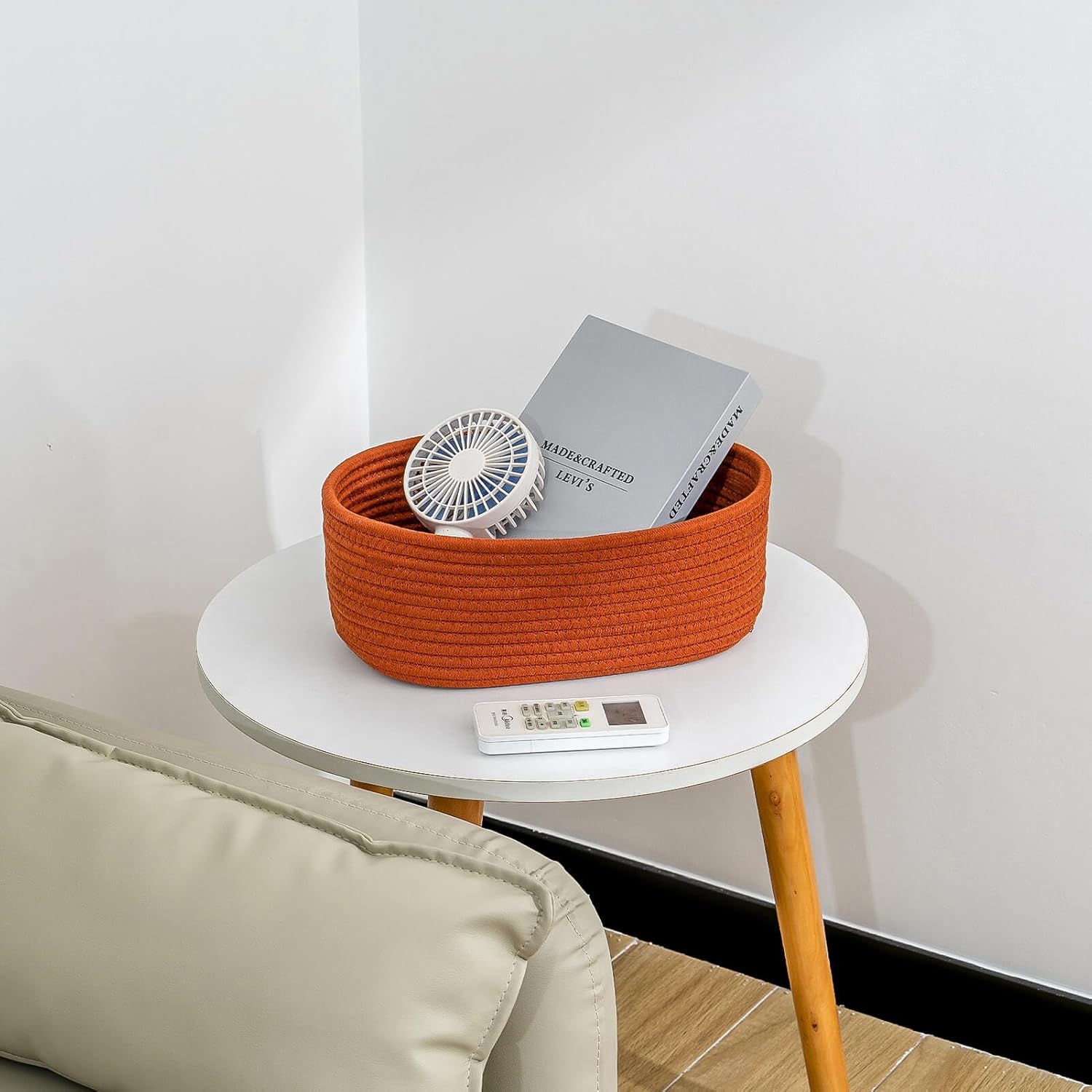 - Classy Natural Cotton Rope Storage Baskets-High quality well made. Very sturdy and a cute modern style. Durable woven rope, Long-lasting, skin-friendly, soft and attractive. You need these adorable baskets to put some supplies in, diaper, jewelry, cosmetics, makeup brushes, tea bags, storing smaller toys, toddler socks, candy