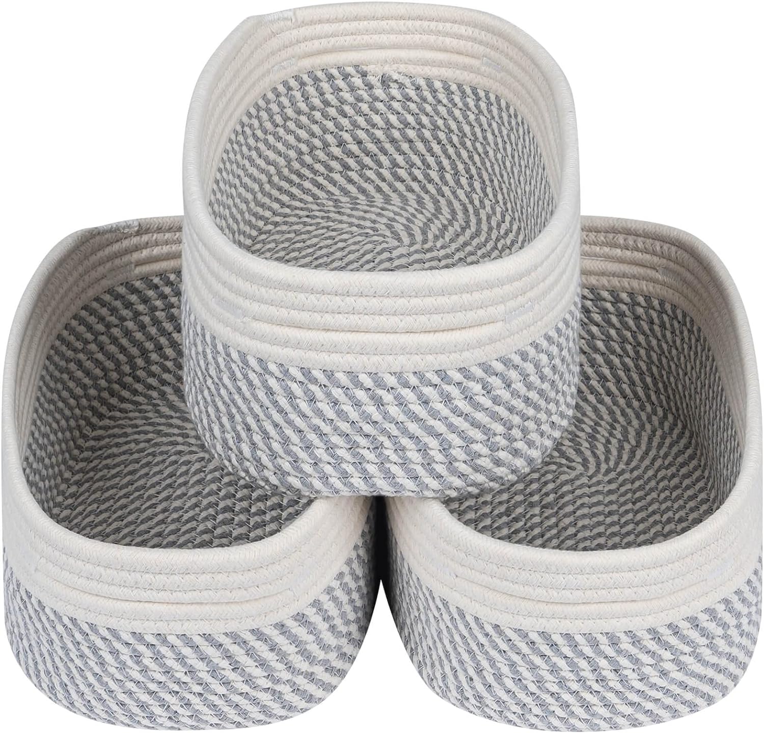 CubesLand Small Baskets, Storage Baskets for Organizing Shelves, Rectangular Woven Storage Basket Natural Cotton Rope Bins Closet Baby Nursery Empty Gifts Basket Off White/Mixed Gray