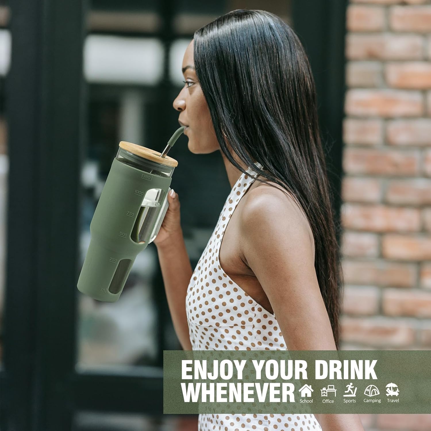 - NATURAL BAMBOO LID & TWO STRAW-Premium natural bamboo lid wrapped in silicone sleeve prevents contact with drinks and keeps lid dry. - 2 straws: Pearl straw and slim straw.Allows you to indulge in pearl milk tea, bubble tea, smoothies, ice water, coffee and milkshakes.Removable straw makes drinking more convenient.