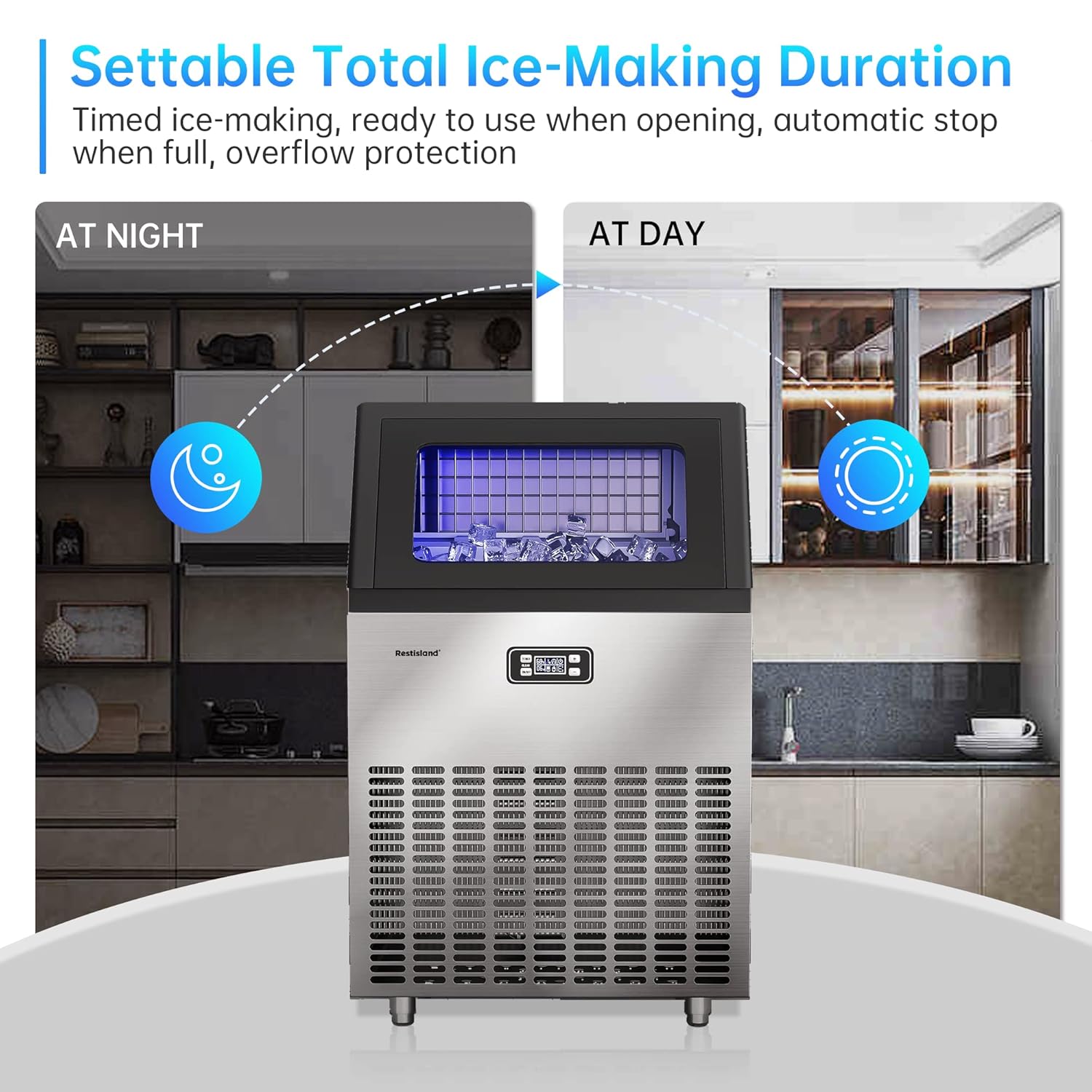 - Fast Ice Making: Featuring the powerful 400w compressor, it can produce about 200lbs every 24 hours. One cycle can produce 90 pieces of ice in just 10-15 minutes, meeting the ice demand of about 1000 cups of drinks every day