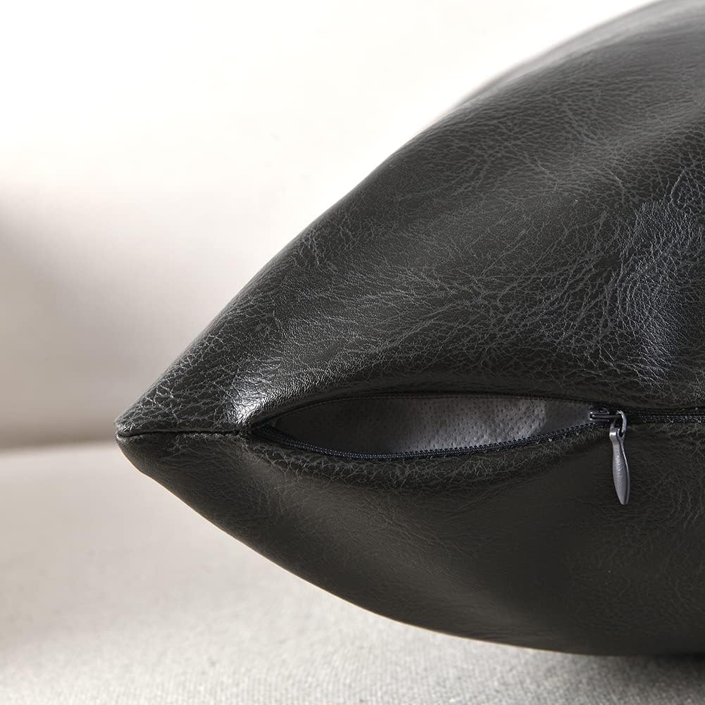 Fancy Homi Dark Gray Long Lumbar Faux Leather Decorative Throw Pillow Covers 12x24 Inch for Outdoor Couch Bed, Modern Farmhouse Boho Home Decor, Grey Hand Stitched Cushion Case 30x60 cm