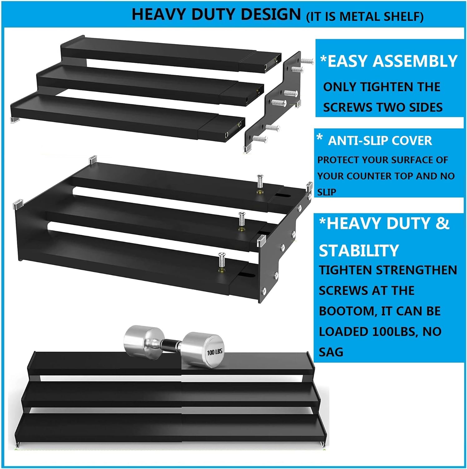 - ⭐[Multifunction]The kitchen 3-tier spice rack effectively saves countertop and cabinet space.Items are within easy reach,but out of view,keeping your kitchen looking organized and clean.Add a stylish look while keeping the room tidy.