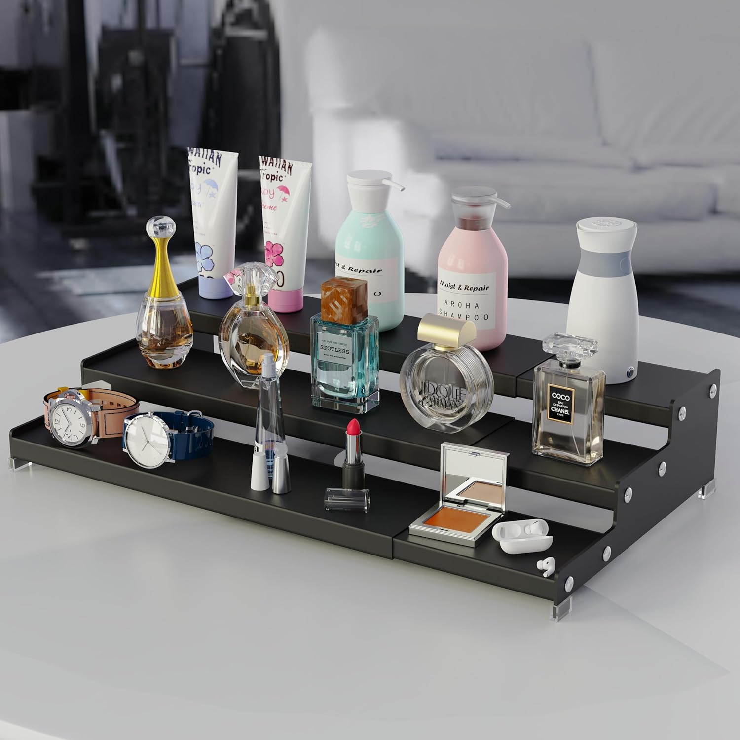 - ⭐[Organize and Save your space]Stepped design to provide you with both space and visibility.you can get what you need quickly and clearly.Create extra space-use it throughout the home; Save for storing and organizing nail polish,perfume, lotions,body sprays,makeup,lipstick and other cosmetics in the bathroom and your other kitchen cabinets.