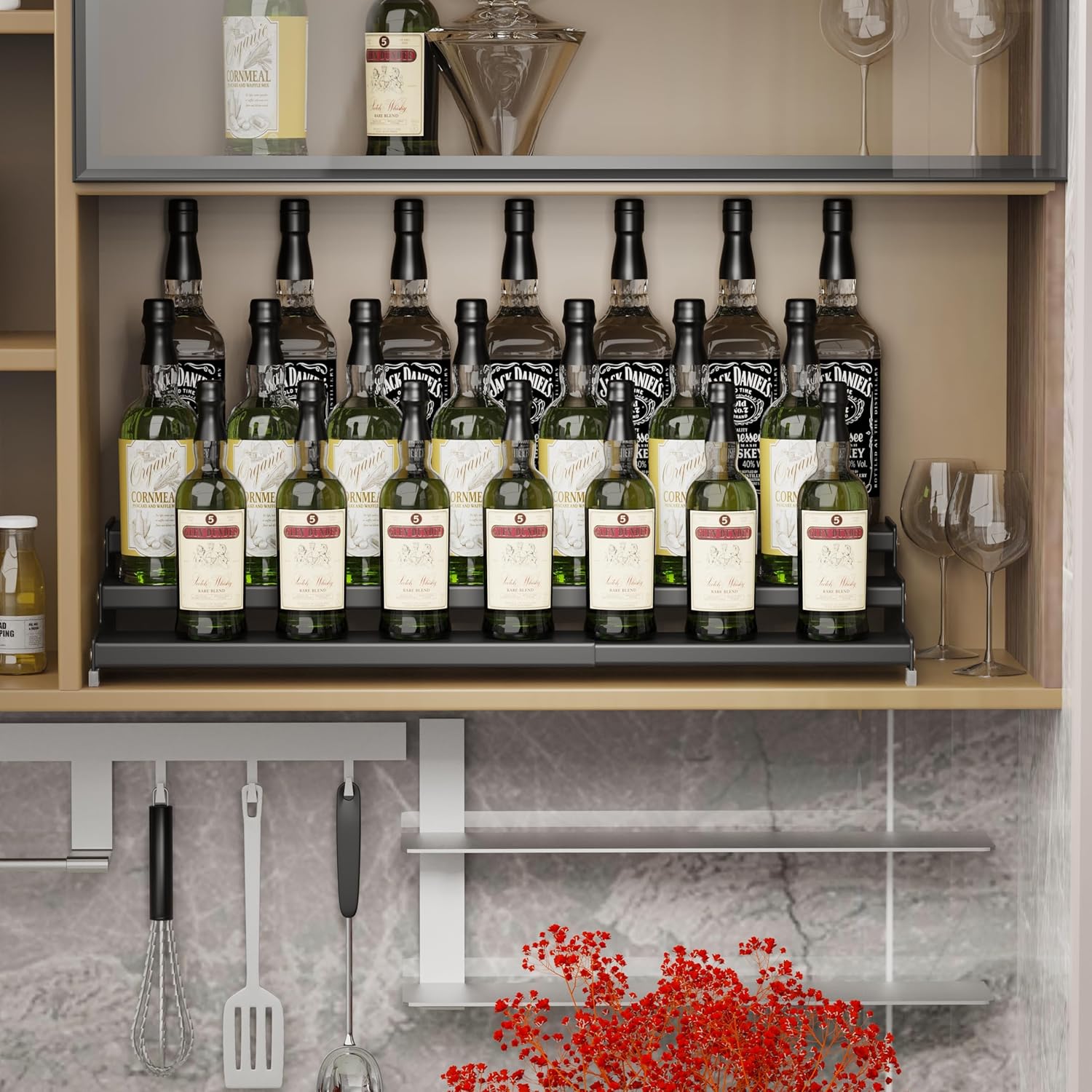 - ⭐[Expandable Size]The spice rack organizer is retractable and has a width range of12.8'' to 24.01'',you can put anywhere you need.Ideal for storing spice,condiment,pepper,sauces,seasoning,cosmetics,dressing,bottles,jars,cans,cup,more.