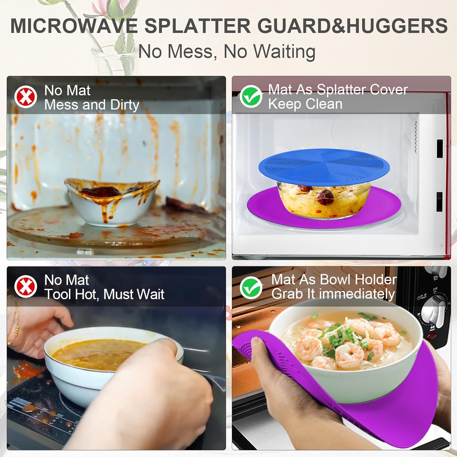 - 【Easy To Clean】 Multi-Purpose Microwave Mat is designed with smooth grooves. It is easy to clean by water or in a dishwasher. Anti-Slip and naturally non-stick.