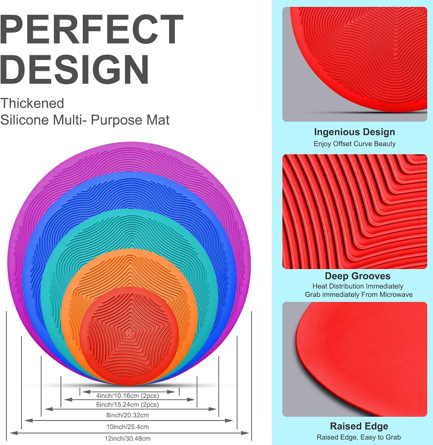 KooMall 12 10 8 6 4 Inch Multi-Purpose Microwave Mat, as Trivet, Pot Holders, Food Cover, Cup Lids, Drying, Place Mat, Utensils Rest, Heat Pad for Hot Pot Pans Bowls Plates Dishes Kitchen Counter