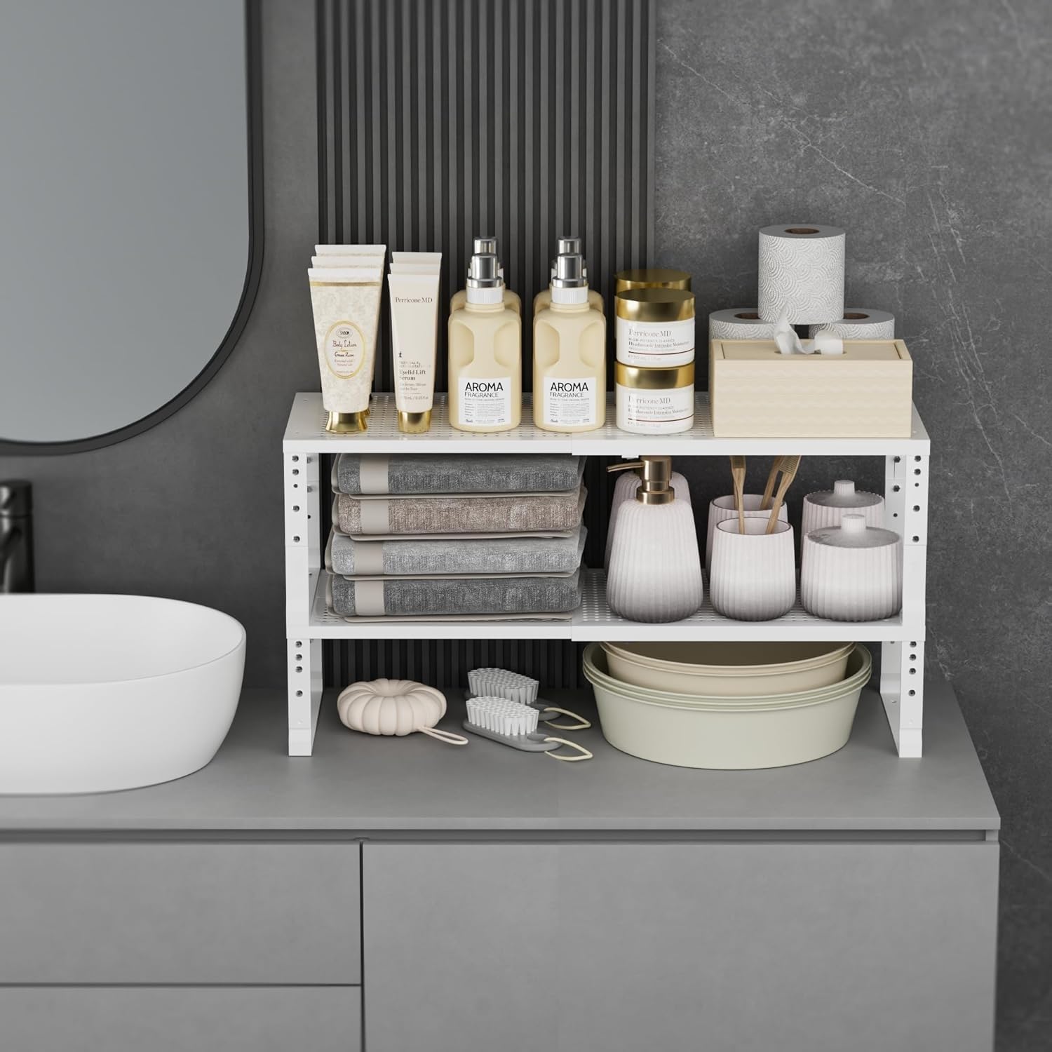 - ⭐[Multi-purpose]This Shelf can be used in various scenes of your house including cabinets,bathroom,dressing table or under a sink. Easily organizing your cabinets for the plates, bowls, snacks, books, foods,body lotion and other else.