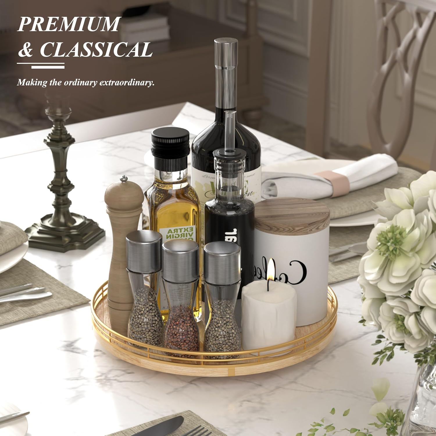 - ππππ πππ πππ ππ: Perfect for a wedding, Birthday, housewarming gift, Mother's Day gift, or centerpiece for any occasions. Tastefully packaged, our turntable organizer makes a thoughtful and practical gift for someone who loves home organization. No assembly was required.