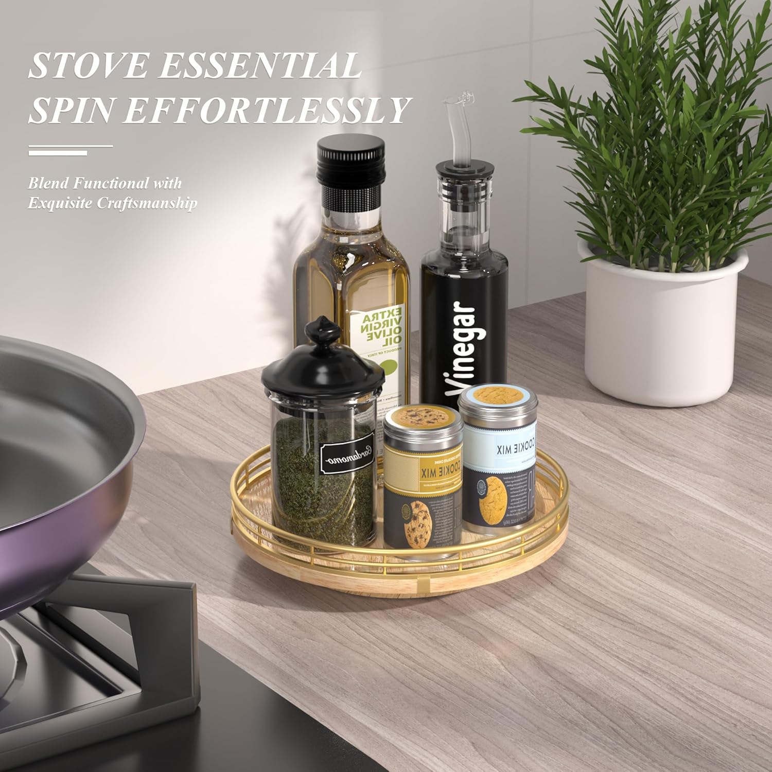 - πππΒ°ππππππππ :The base is made of solid wood, and the spinning mechanism is made of steel ball bearings, which are well-built and allow for 360Β°smooth spinning. This Lazy Susan is very attractive and very easy to use to keep your spices, condiments, and more organized and accessible.