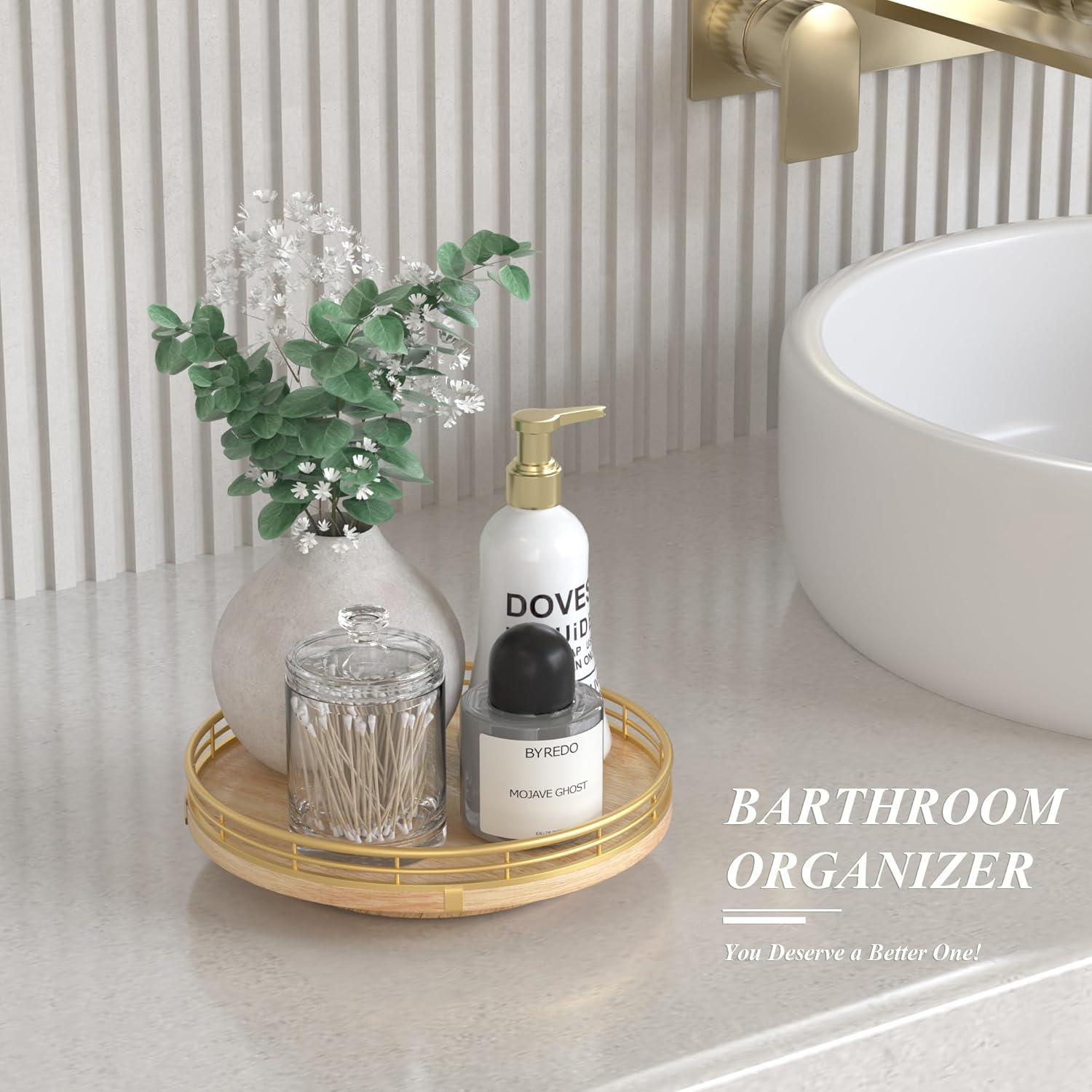 Farmhouse Oak 9" Lazy Susan Turntable Organizer for Cabinet, Round Wooden Lazy Susan Organization and Storage for Dining Table, Pantry, Kitchen, Countertop, Cupboard,Home Decor