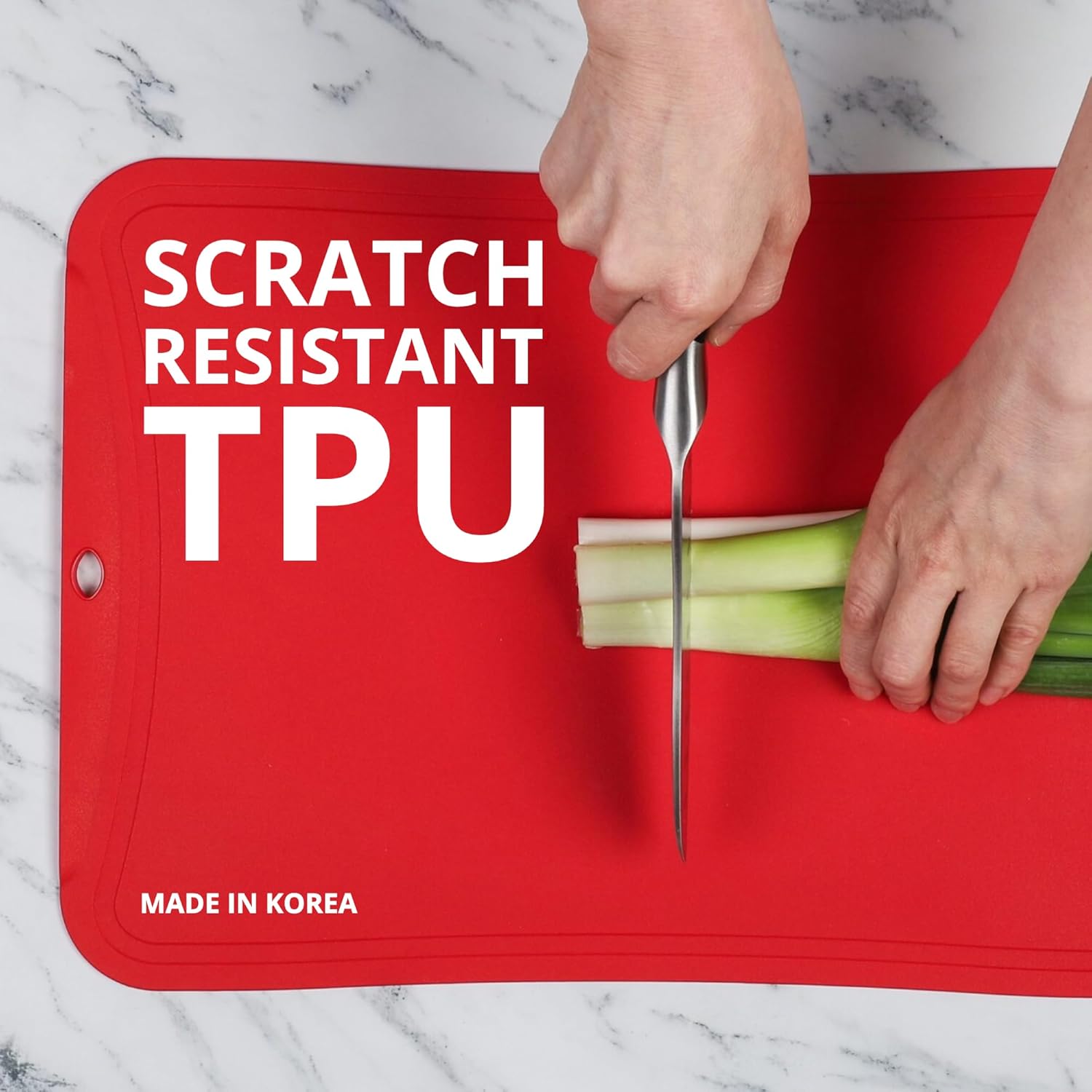 Blue Ginkgo TPU Cutting Mat [Medium] – Korean-Made Flexible, Knife-Friendly, Durable Kitchen Cutting Board (Red)