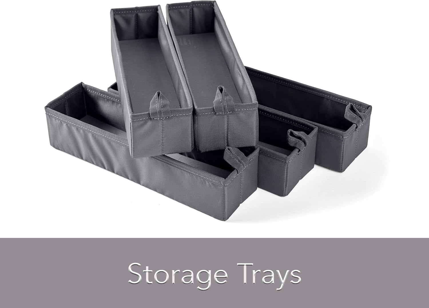 - STORAGE SIZE: 15W x 11D x 3H, includes 5 trays