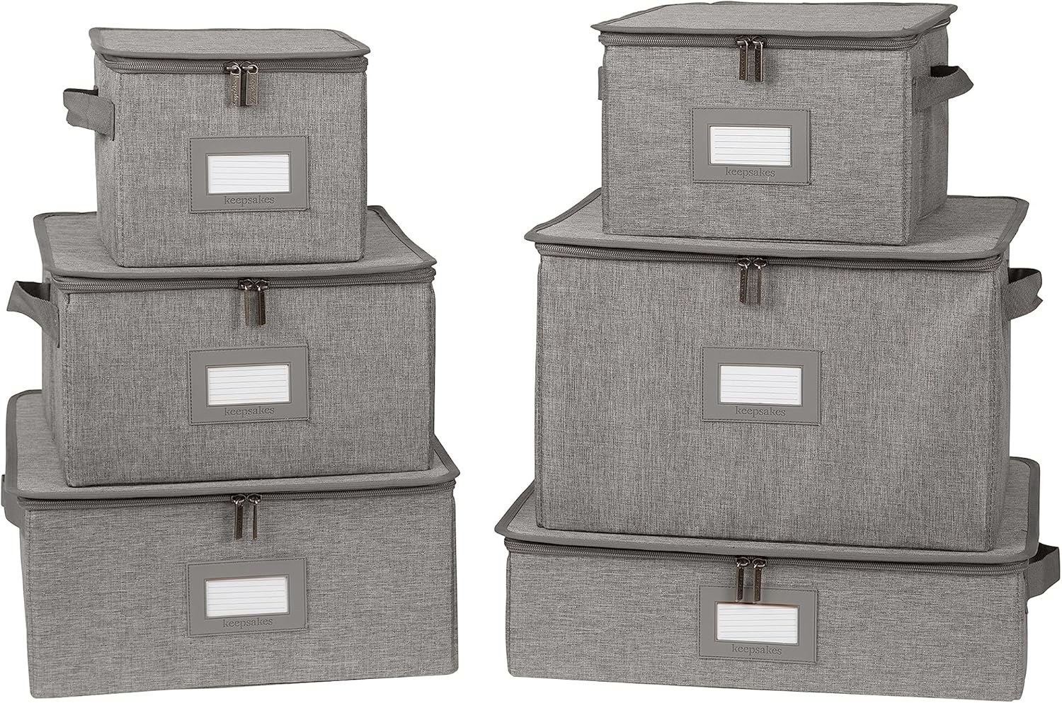 Covermates Keepsakes Dish Storage Box - Stackable, Reinforced Handles, China Storage, Grey Heather