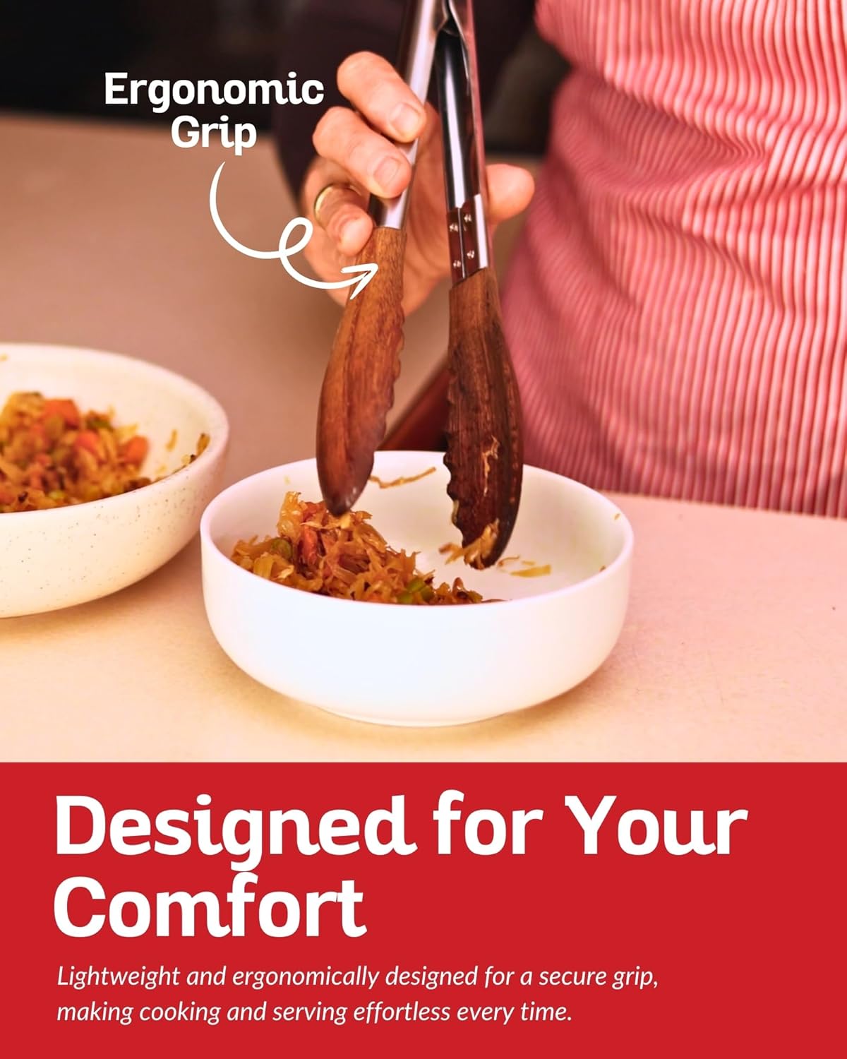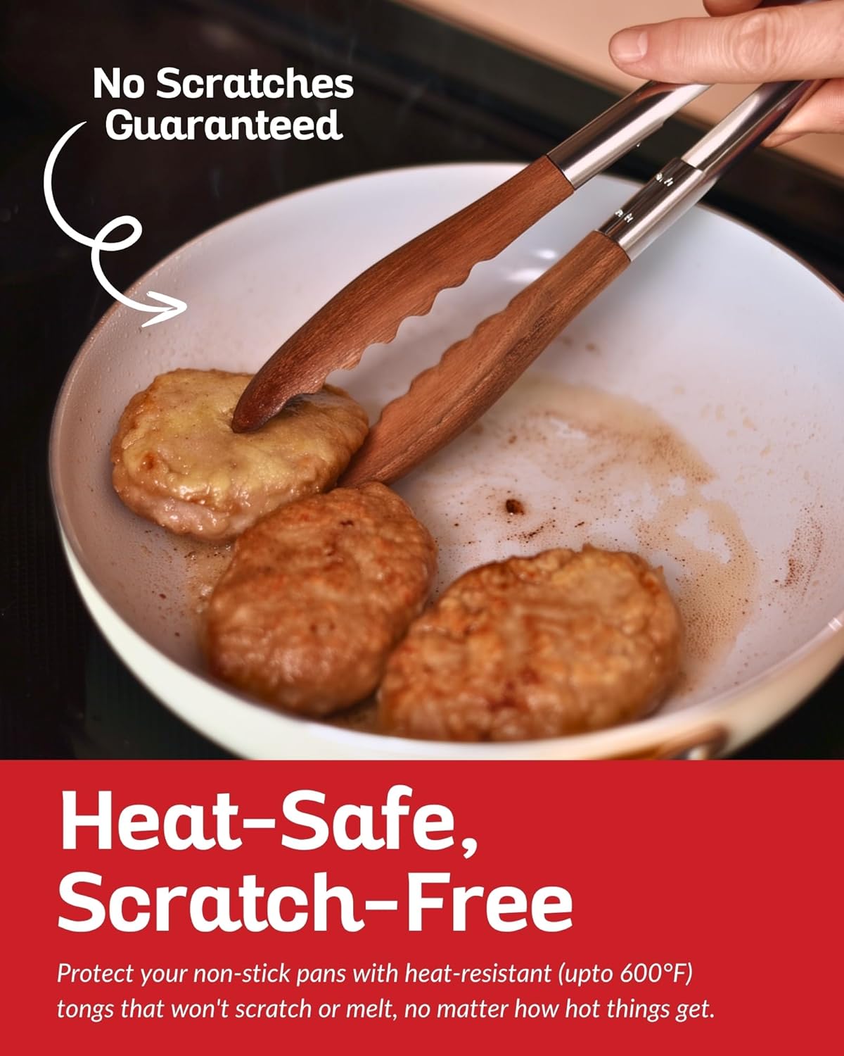 - SCRATCH-RESISTANT: Our tong for serving food come with wooden tips, ensuring this is gentle on all types of cookware. Wood Tongs, ideal for cooking, grilling, BBQ, and tossing salad, they prevent scratches on non-stick surfaces, making them a safe choice for your favorite pots and pans.