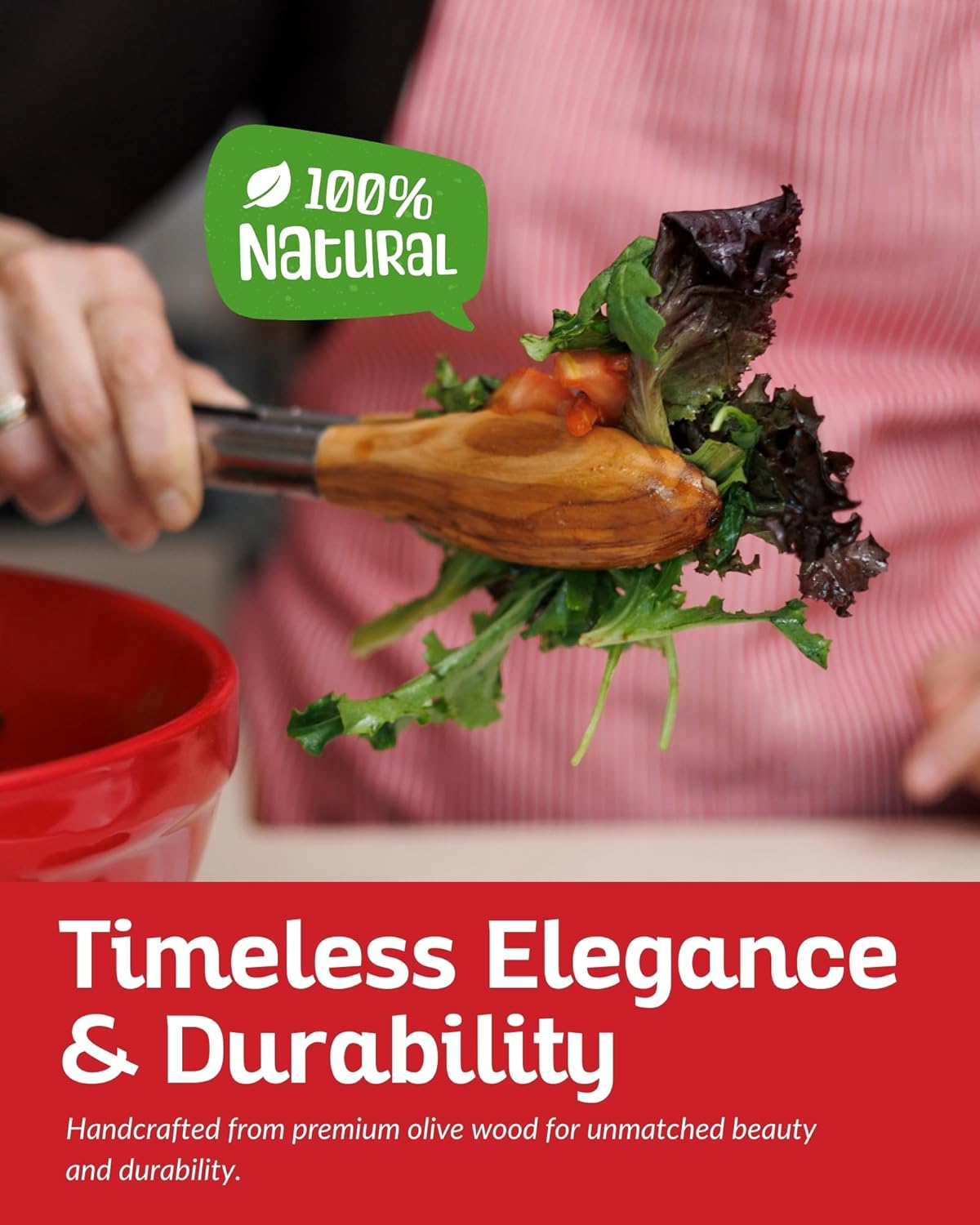 - NON-TOXIC NATURAL OLIVE WOOD: Boxiki Kitchen wooden tongs are made from food-grade natural olive wood and stainless steel. The combination of thickened stainless steel and natural olive wood enhances strength and durability, making them safe and convenient for cooking.