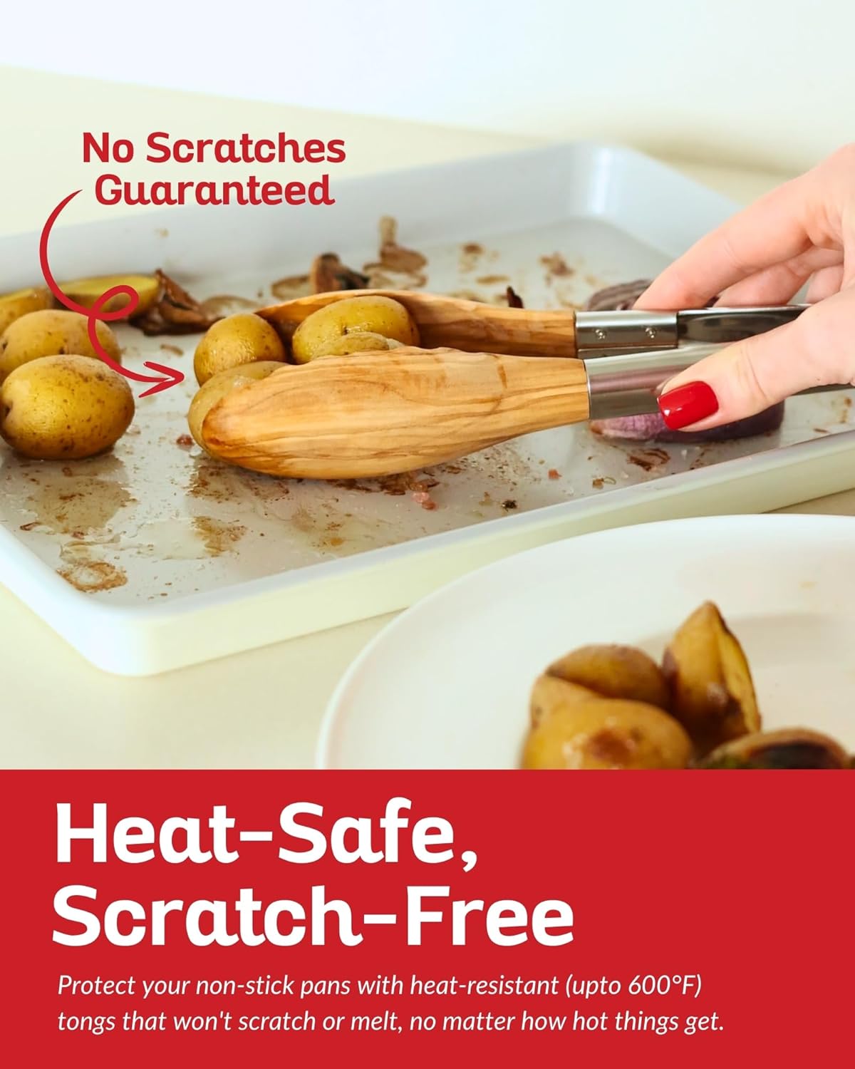 - SCRATCH-RESISTANT: Equipped with wooden tips, these tongs are gentle on non-stick cookware, minimizing the risk of scratches and wear. Olive wood is heat-resistant, making it suitable for nearly all cooking tasks.