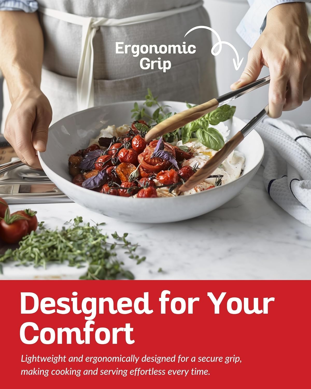 - STRONG GRIP & EASY TO CLEAN: The large grip design of this salad tongs ensures easy and secure food handling. Cleaning is simple; just rinse with clean water for repeated use.