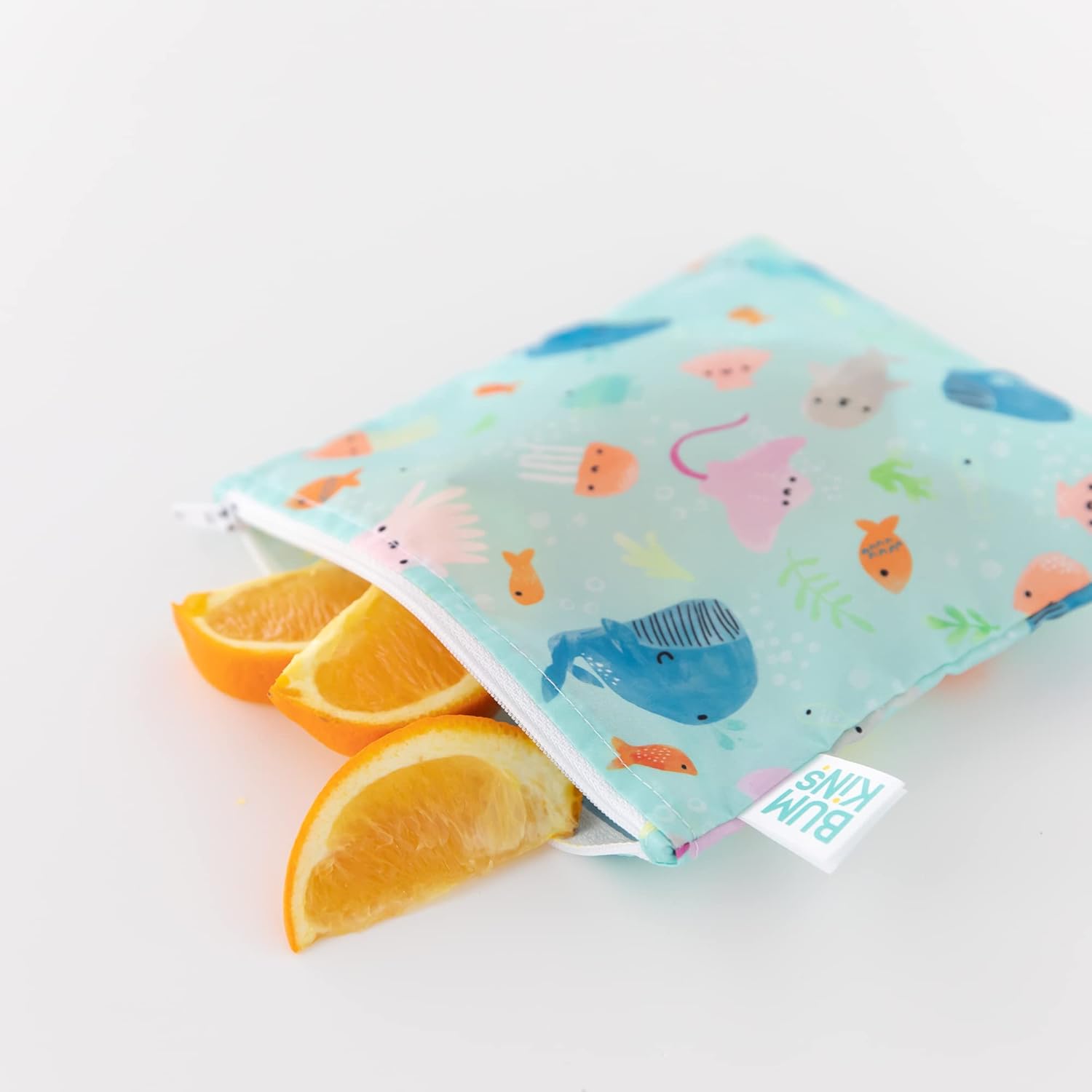 Bumkins - Cloth Snack & Sandwich Bags - For Storage, Travel, Food Prep, Lunch - Reusable, Water Resistant, Washable, Dishwasher Safe - Snack Bags for Kids - Zipper Closure - Ocean Life - 4 Pack