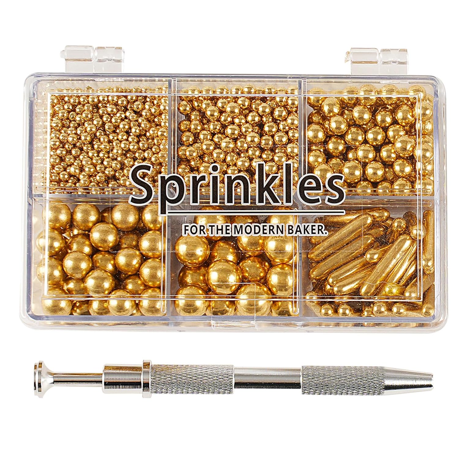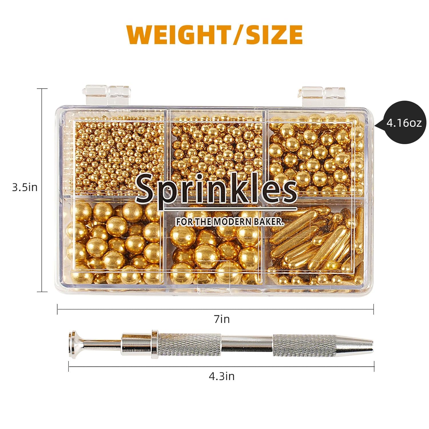 - 【Product List】: You will receive: 1 box of gold cake sprinkles, 118g/4.16oz. 1 piece of pearl grabber. Sufficient quantity, convenient and practical, it can meet your daily needs well.