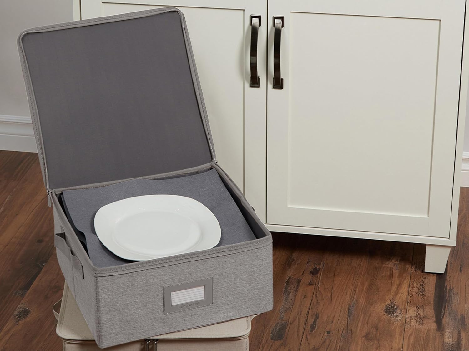 Covermates Keepsakes Dish Storage Box - Stackable, Reinforced Handles, China Storage, Grey Heather