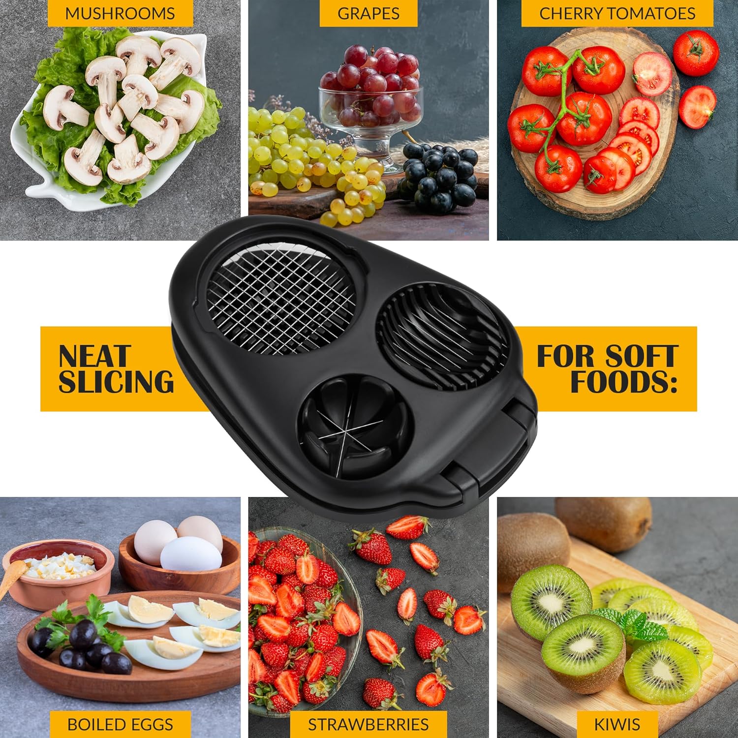 CraftyCrocodile Egg Slicer for Hard Boiled Eggs - 3 Slice Modes Egg Cutter, Heavy Duty, Stainless Steel Dicer - Kitchen Chopper Tool for Strawberry, Mushroom, Grape, Cherry Tomato - Black
