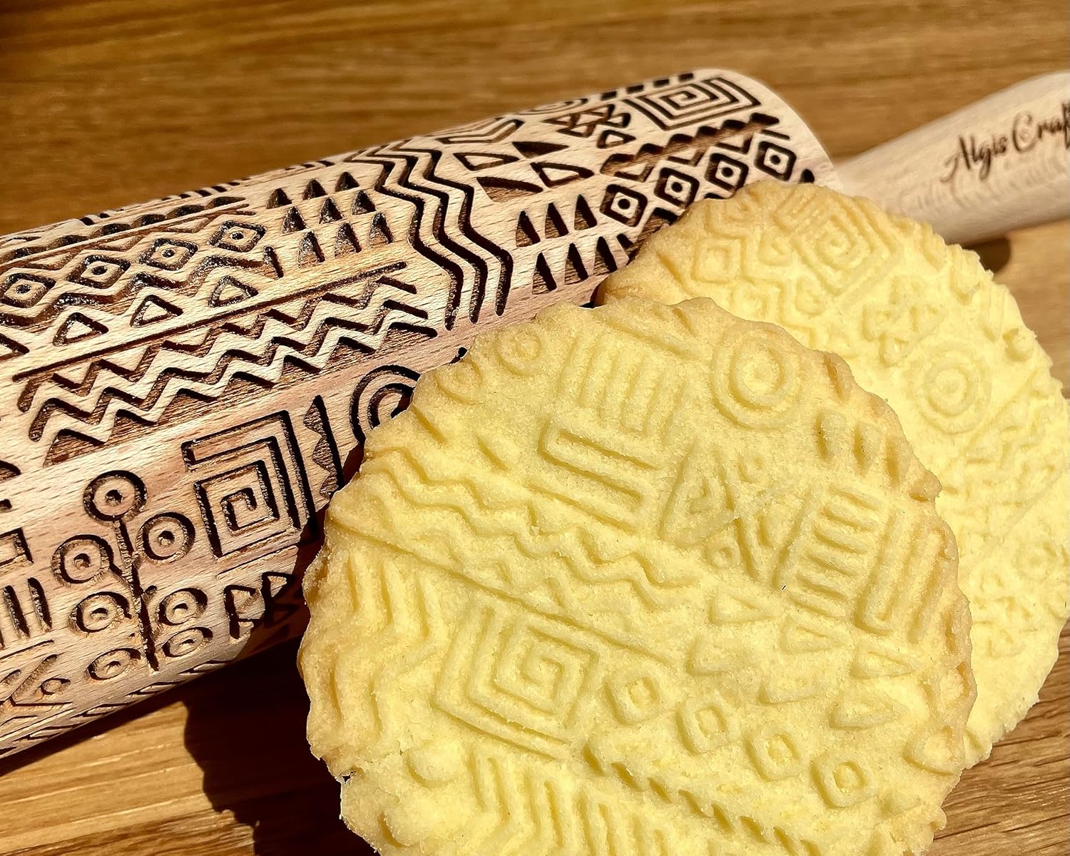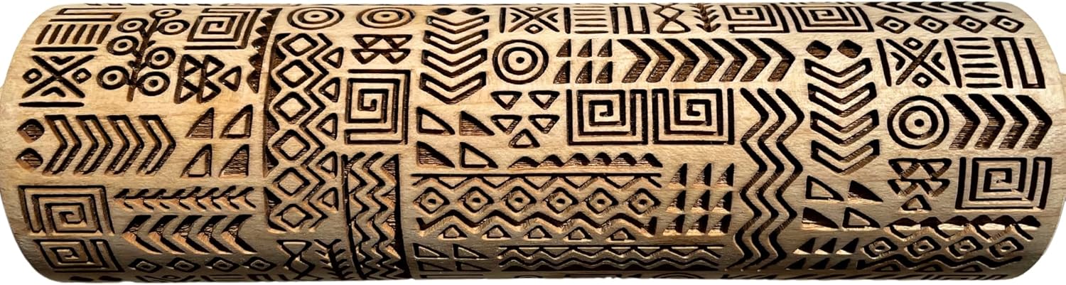 TRIBAL Embossing Rolling Pin. Laser Engraved Dough Roller for Embossed Cookies or Pottery by Algis Crafts