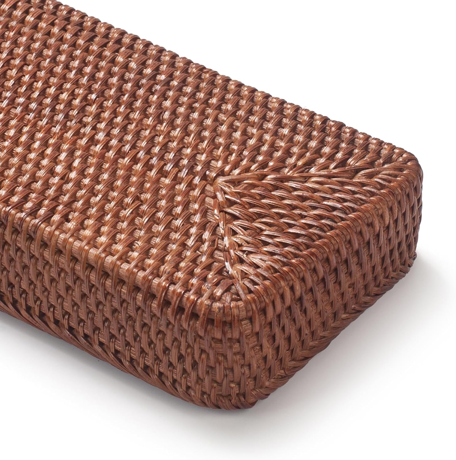 Rattan Bathroom Vanity Trays Toilet Tank Baskets Long Narrow Hand Towel Storage Basket for Storage, Decorative (Honey Brown 16.3 x 6.1 x 2 inch)