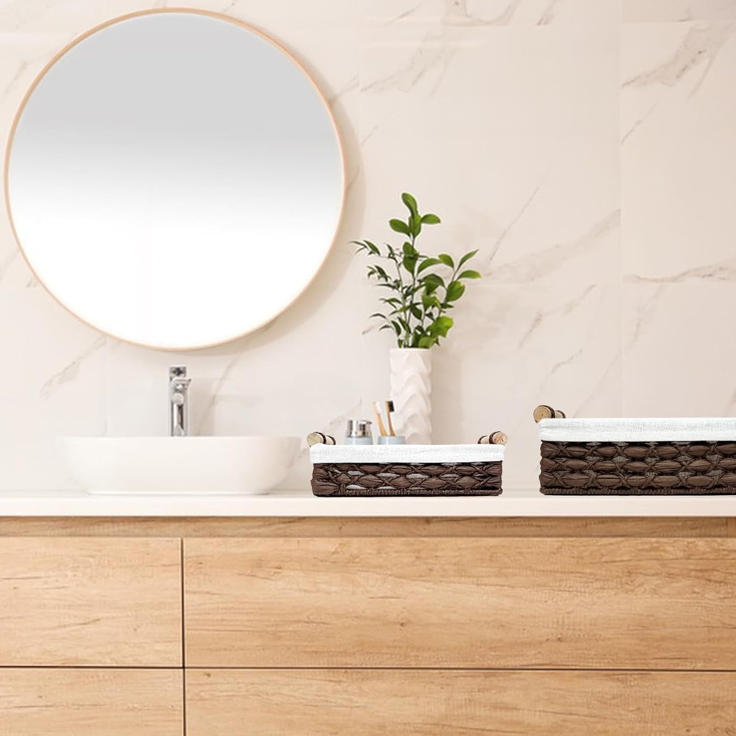 Storage Basket Wicker Baskets for Organizing with Handle Decorative Storage Bins for Countertop Toilet Paper Storage Basket for Toilet Tank Top Small Baskets Set (Set of 2)