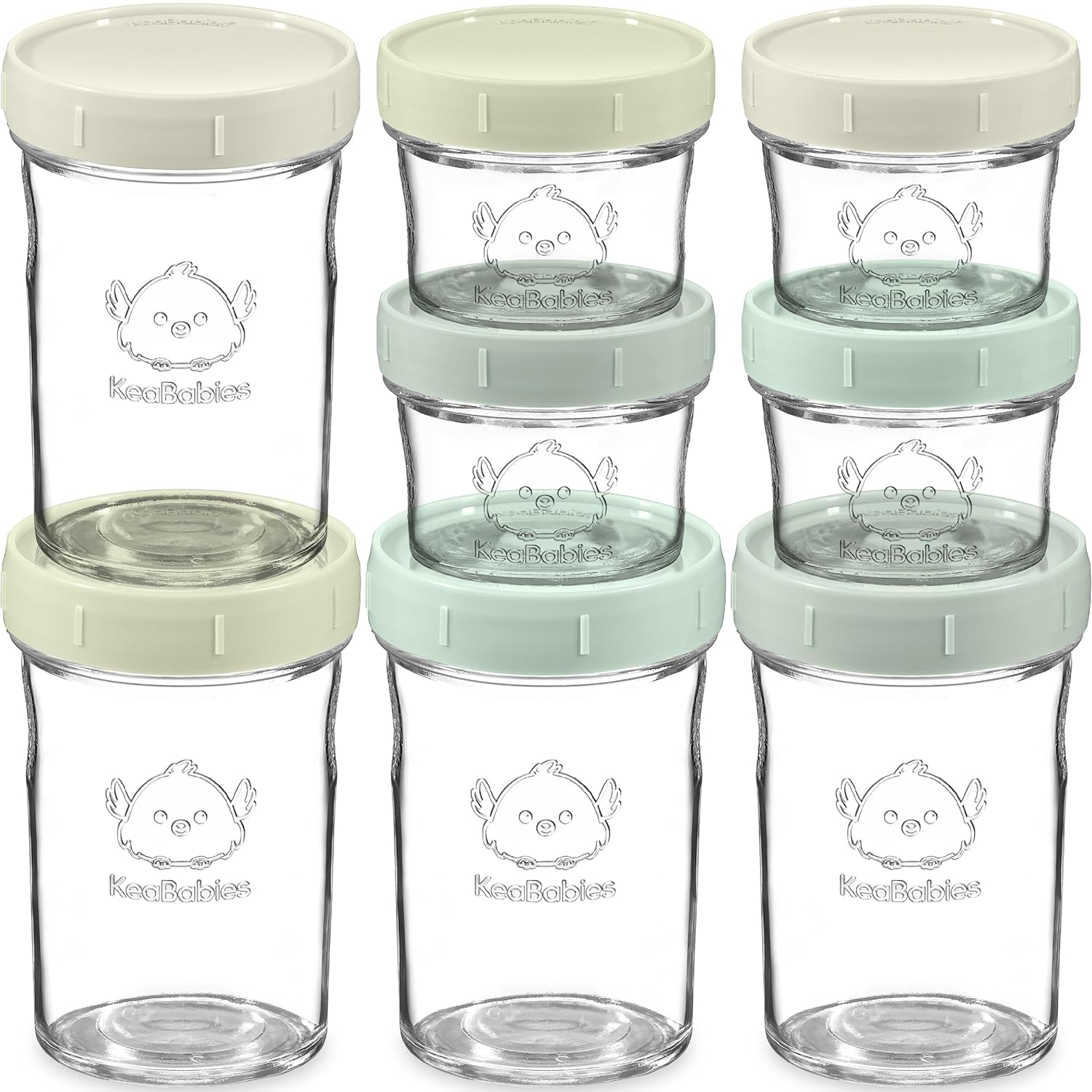 KeaBabies 4pk 8oz & 4pk 4oz Glass Baby Food Containers with Lids - Leak-Proof, Microwavable Small Glass Jars, Baby Purees & Toddler Snack Storage Containers, BPA-Free, Dishwasher & Freezer Safe(Sage)