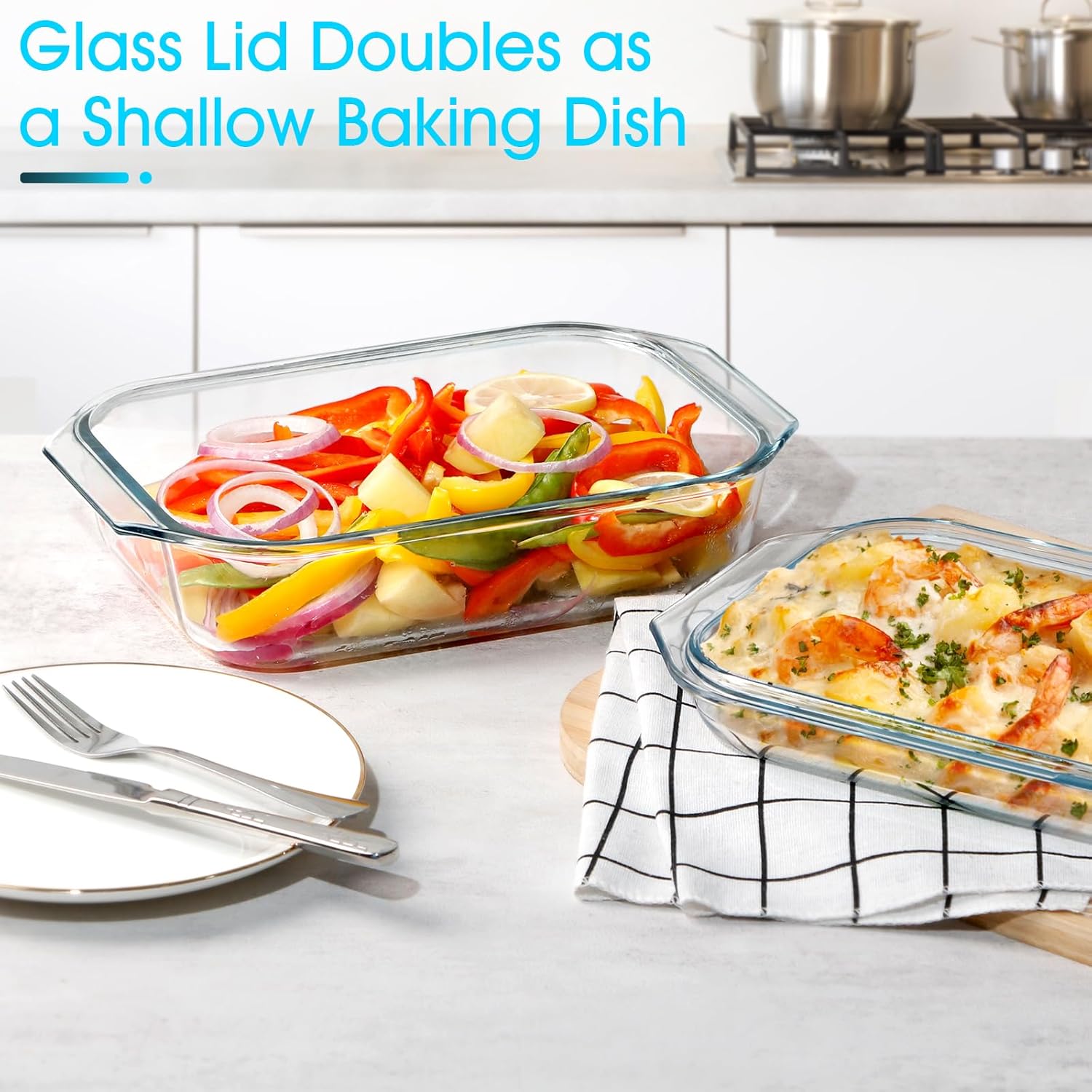 - 【2 In 1 Design】The lid can be used instead of foil and turned over and used for shallow dishes. The glass lid allows you to easily monitor your food while it cooks, locking in flavors and moisture for delicious results every time. Whether you're cooking for yourself or hosting a dinner party, this casserole dish is both stylish and practical.