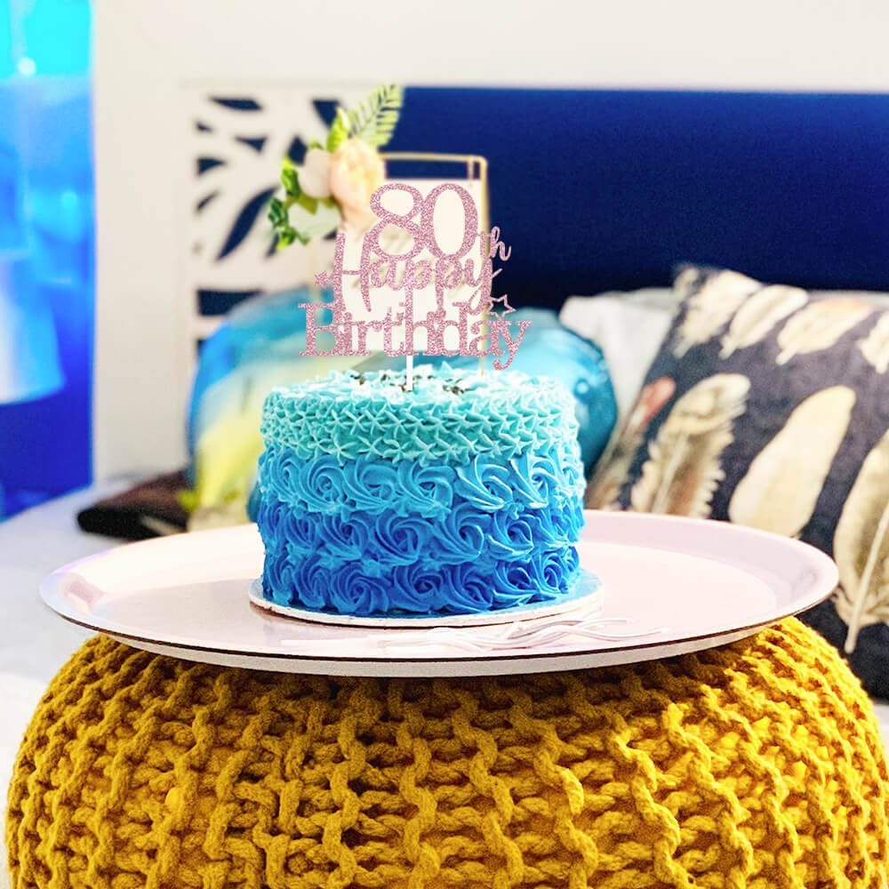 Glittery 80th Happy Birthday Cake Topper with Star,Personalised 80 Birthday Cake Toppers Party Decorations Party Supplies for Men Women Rose Gold