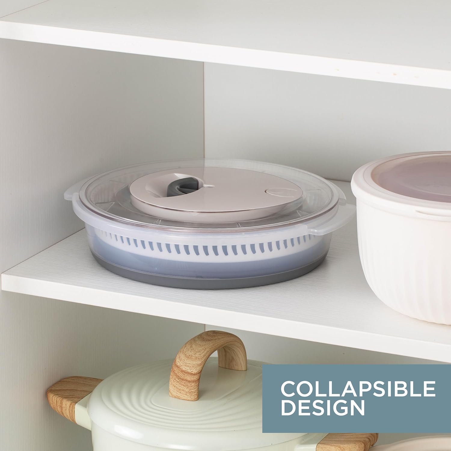 COOK WITH COLOR Collapsible Salad Spinner - 4 QT Space Saving Lettuce Dryer with Folding Collapsible Colander Great for Washing and Drying Fruit and Vegetables (Grey)