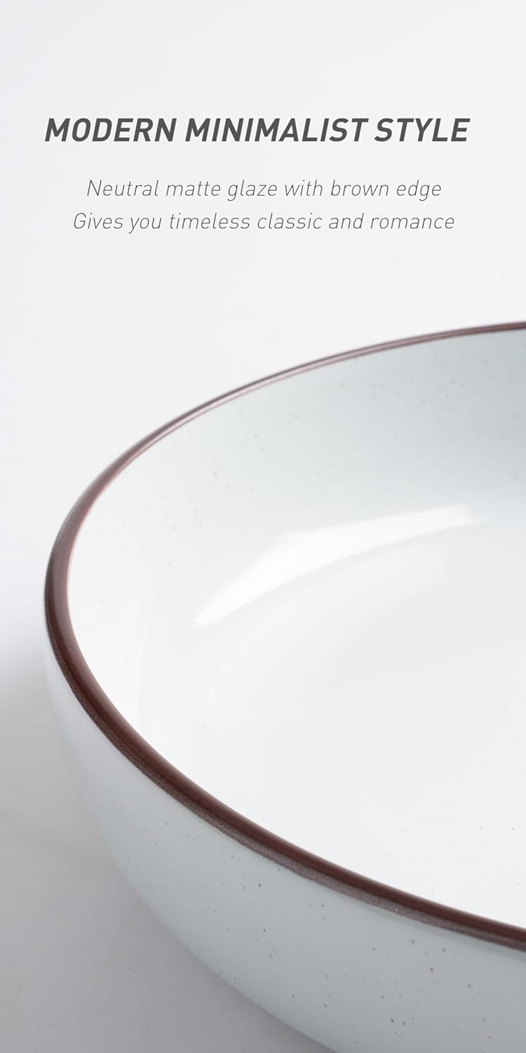 - 【AWESOME DESIGN】These pasta bowls are randomly scattered with speckled patterns of various sizes and shades to make each piece unique, and the use of handcrafted brown edges further adds dimension and artistry to the bowl, making it stand out from the crowd.