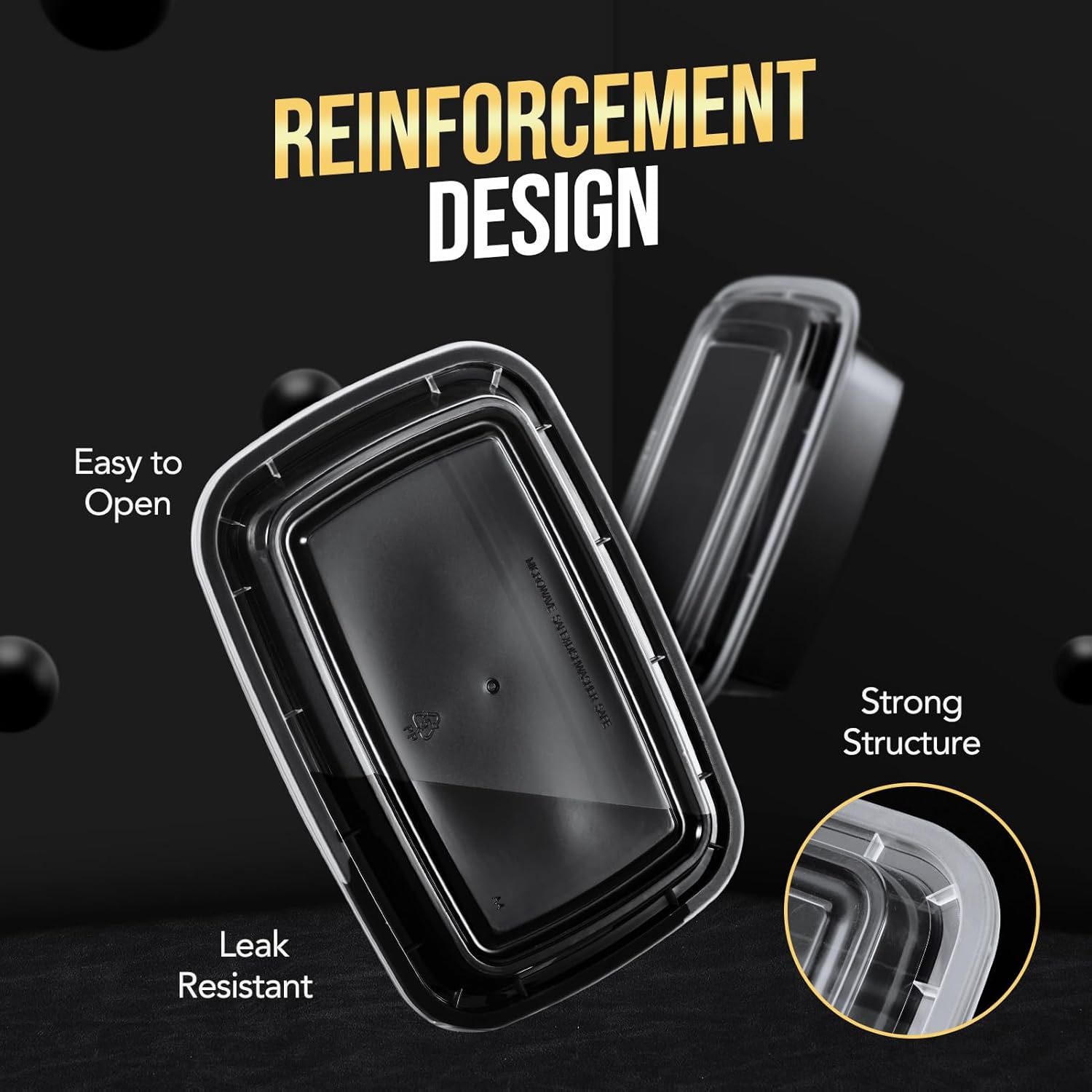 100-Piece (50-Pack) 16 OZ Meal Prep Containers Reusable with Lids, Sturdy Leakproof & Food Safe, Microwave, Freezer, Dishwasher Safe To Go Food Containers, Plastic Take Out Containers, Black